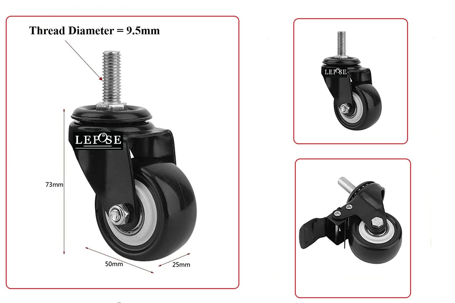 Material: PU Rubber+ Steel / Colour: Black / Wheel Diameter 2″ / Screw Diamter Size (9.5mm) and Lenght 25mm