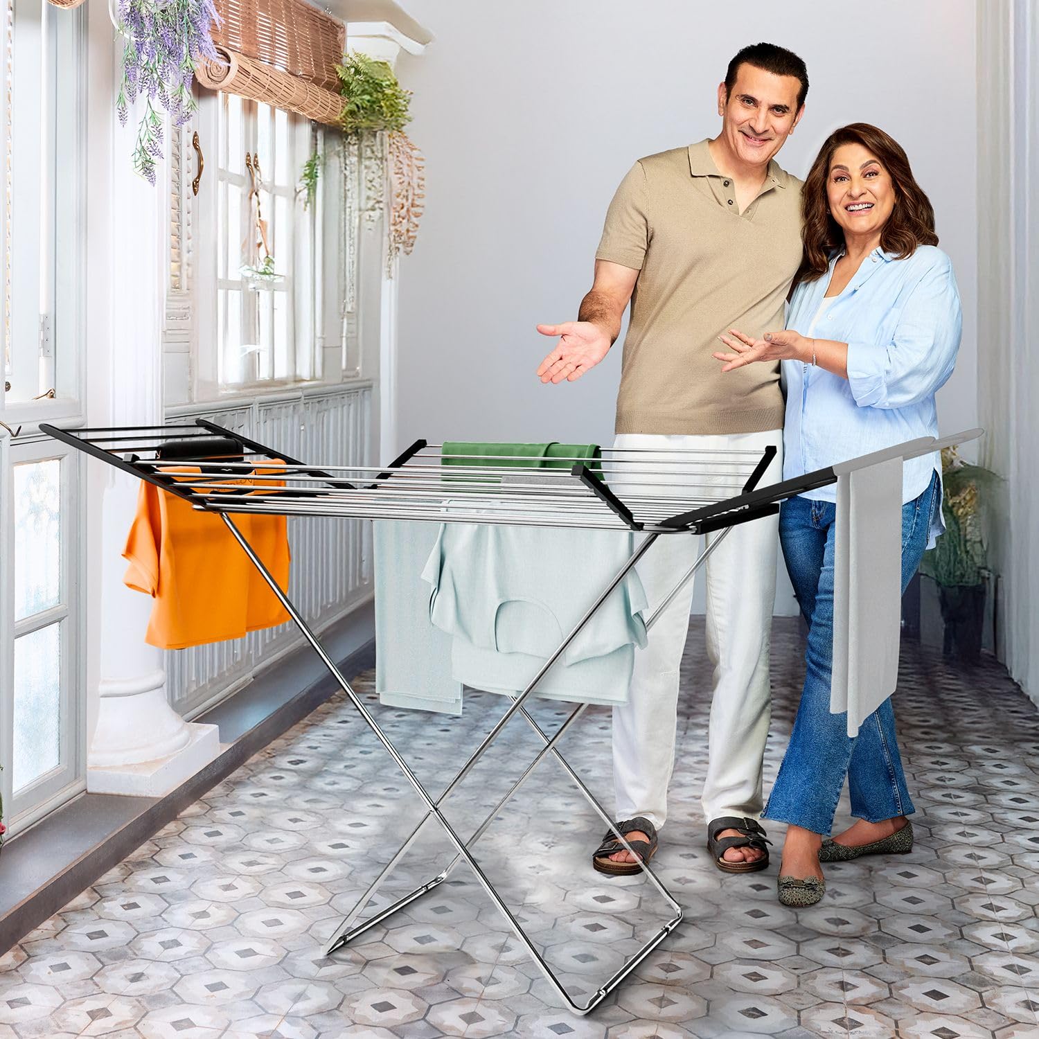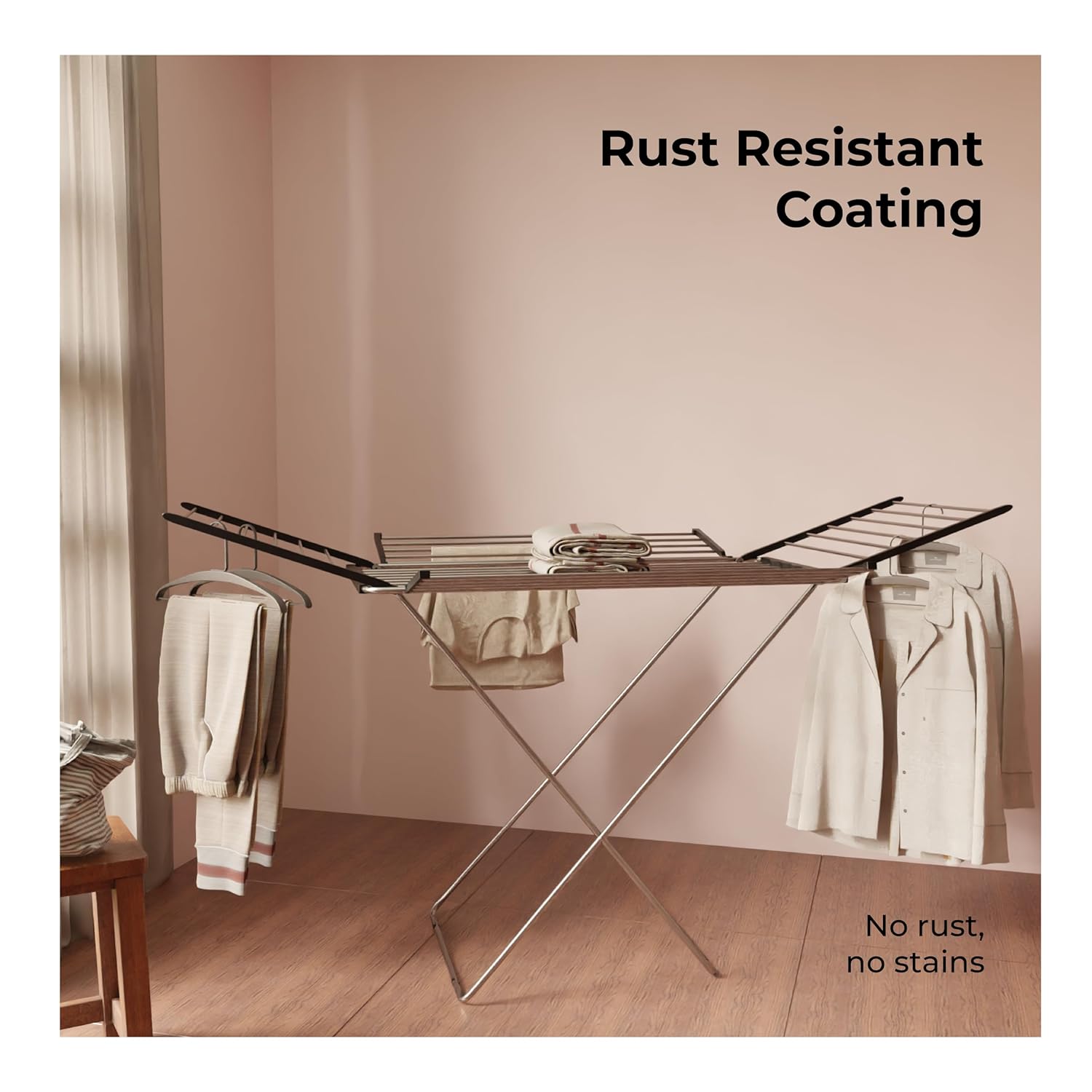 Slim and sleek when folded fits in corners, under beds, or in closets. Perfect for compact homes, it saves space without compromising on drying capacity.
