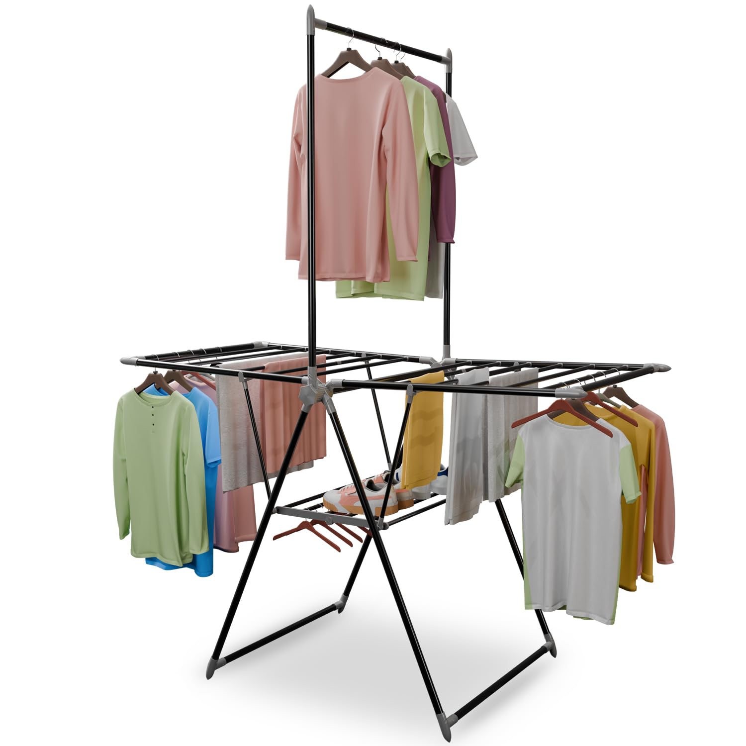 Our cloth drying stand’s roomy design makes it ideal for holding long garments, such as coats and dresses, and ensuring that they dry quickly and evenly.