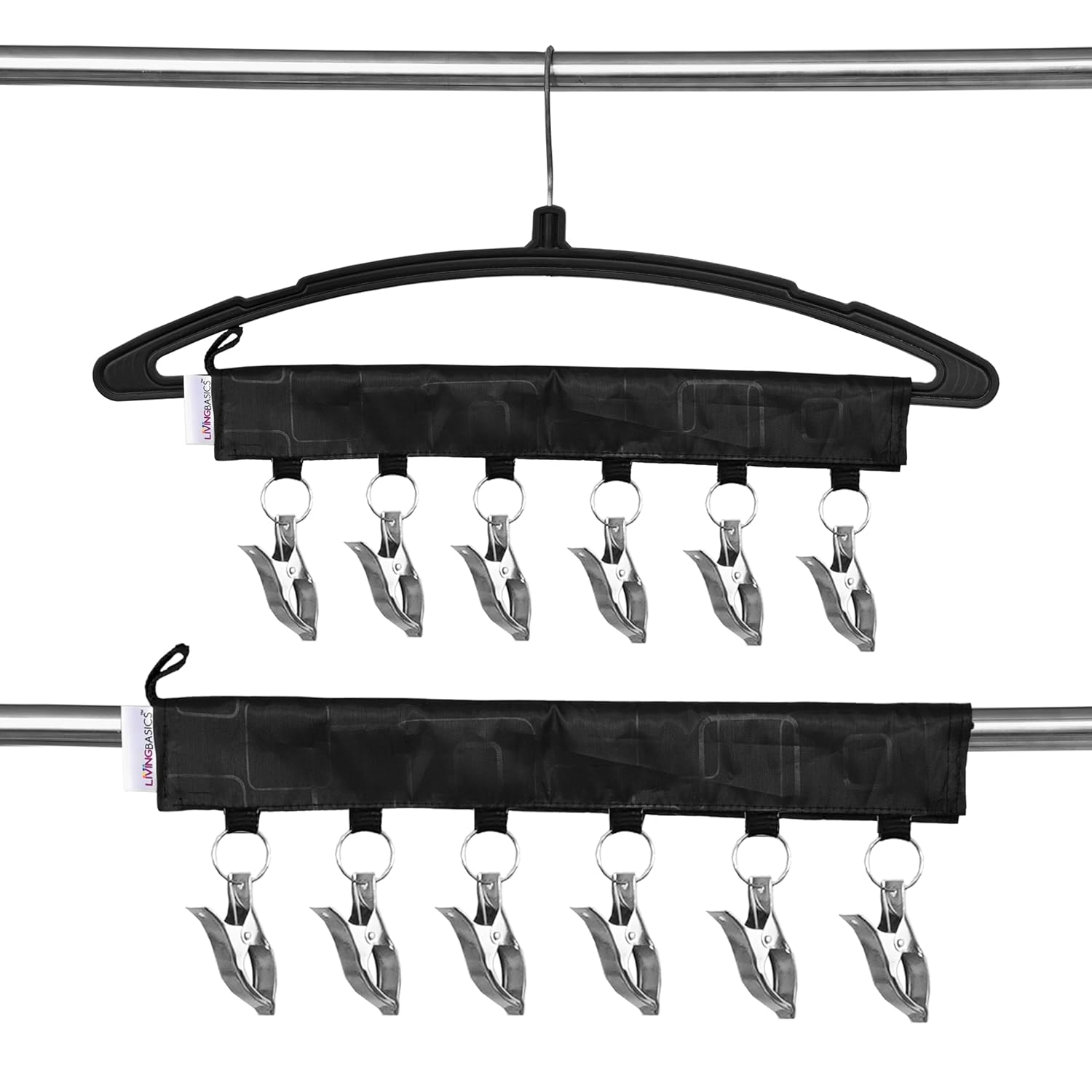 UTILIZE ANYWHERE: Equipped with durable stainless steel clips, our versatile clipper is perfect for securely hanging clothes to dry or for organizing clothing while on the go. Use it on bathroom rods, ropes, wardrobes, cloth drying stands, and even while travelling. Whether you need to hang up wet towels, dry clothes, or keep your outfits organized during travel, these stainless steel clips for clothes are the perfect solution for all your needs