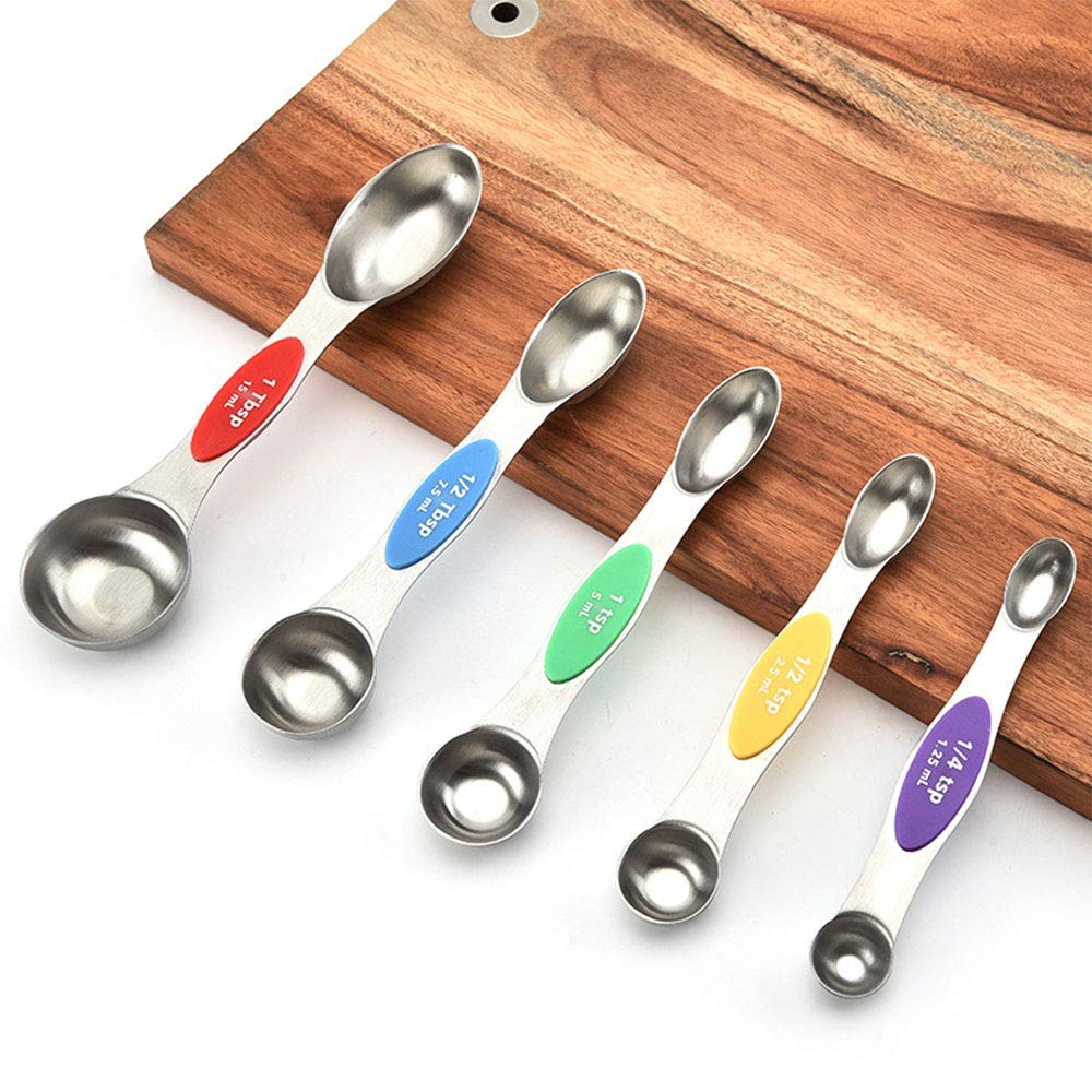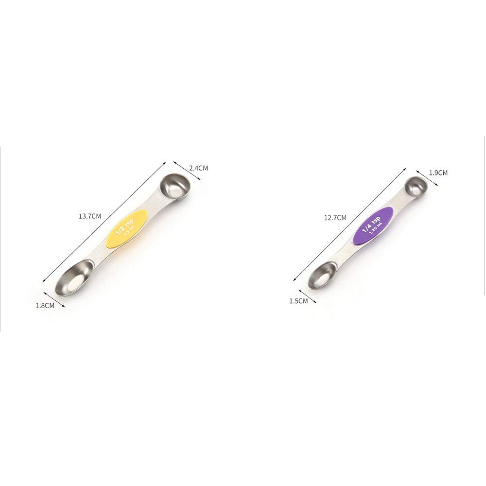 ⭐ Dual Sided Measuring Spoon Set: Double ended design makes teaspoon measuring spoon compatible for dry and liquid ingredients, round end for measuring liquid ingredient and the narrow oval end can fit in most spice jars or bottles