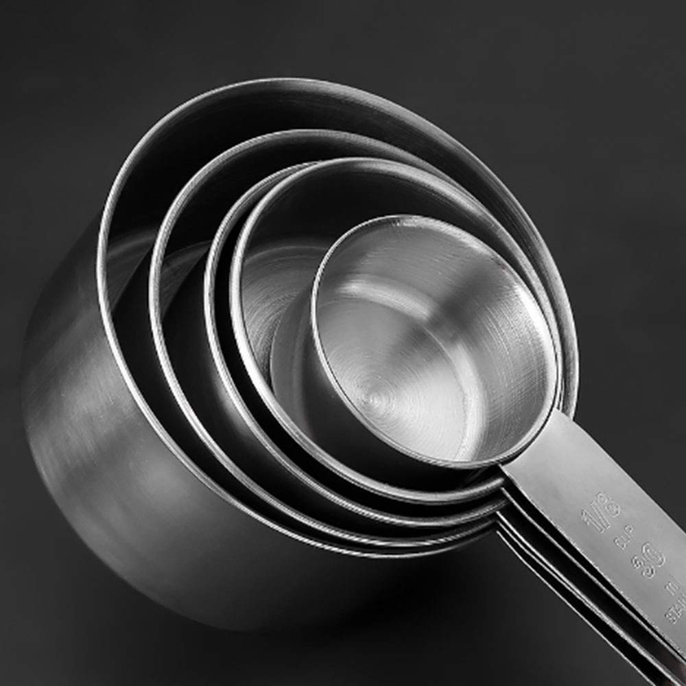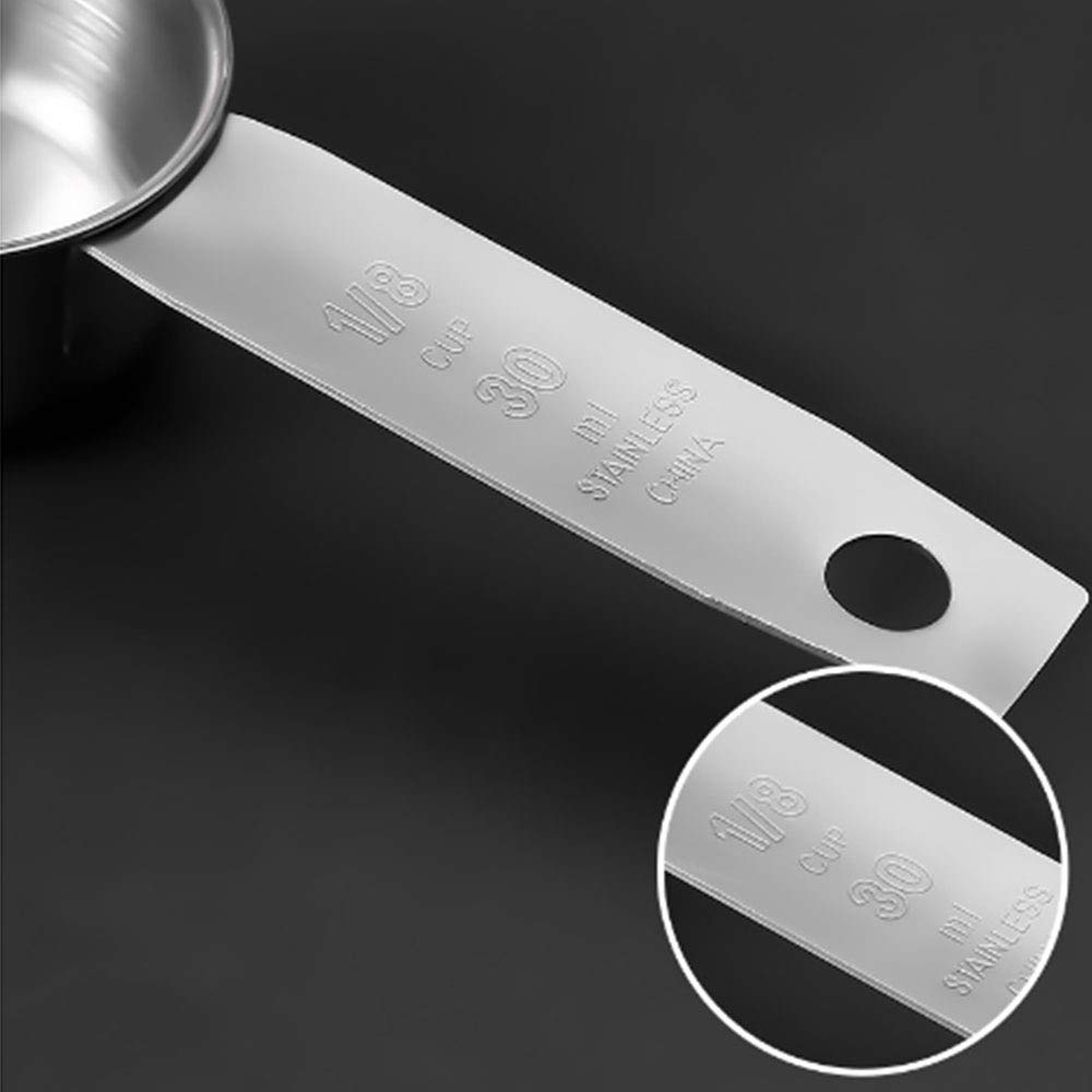 ⭐ This 5-piece measuring spoon is made of food-grade stainless steel, will not rust, and is very suitable for liquid and dry ingredients, with a firm insertion ring, easy to hang the handle