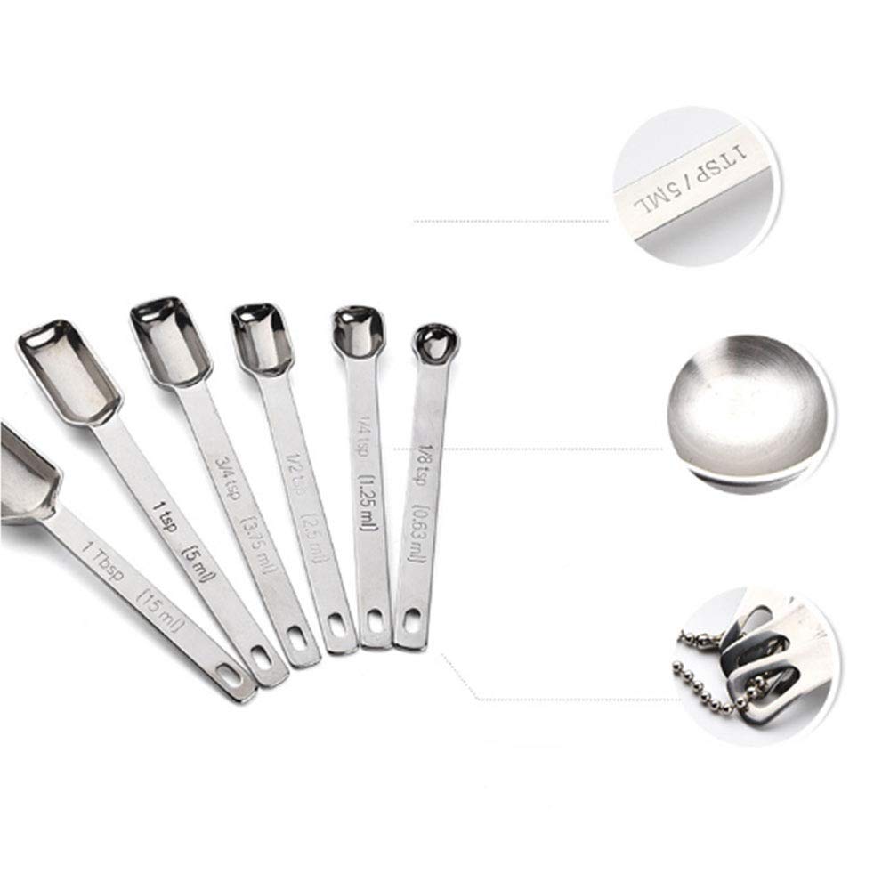 ✔ Care: The measuring spoon set can not be wiped with hard scouring pads, steel balls or chemical agents, please do not use strong alkaline or strong oxidizing chemicals for cleaning