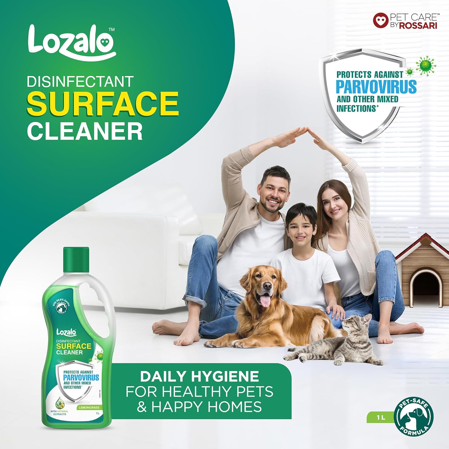 Disinfectant Formula: Infused with natural extract for powerful protection against germ.Pet-Friendly Cleaning Agent: Designed to be gentle and safe for homes with pets.Kid-Safe Composition: Free from toxic chemicals & safe for children & babies. Long-Lasting Lemongrass Fragrance: Leaves a pleasant and refreshing scent post- cleaning