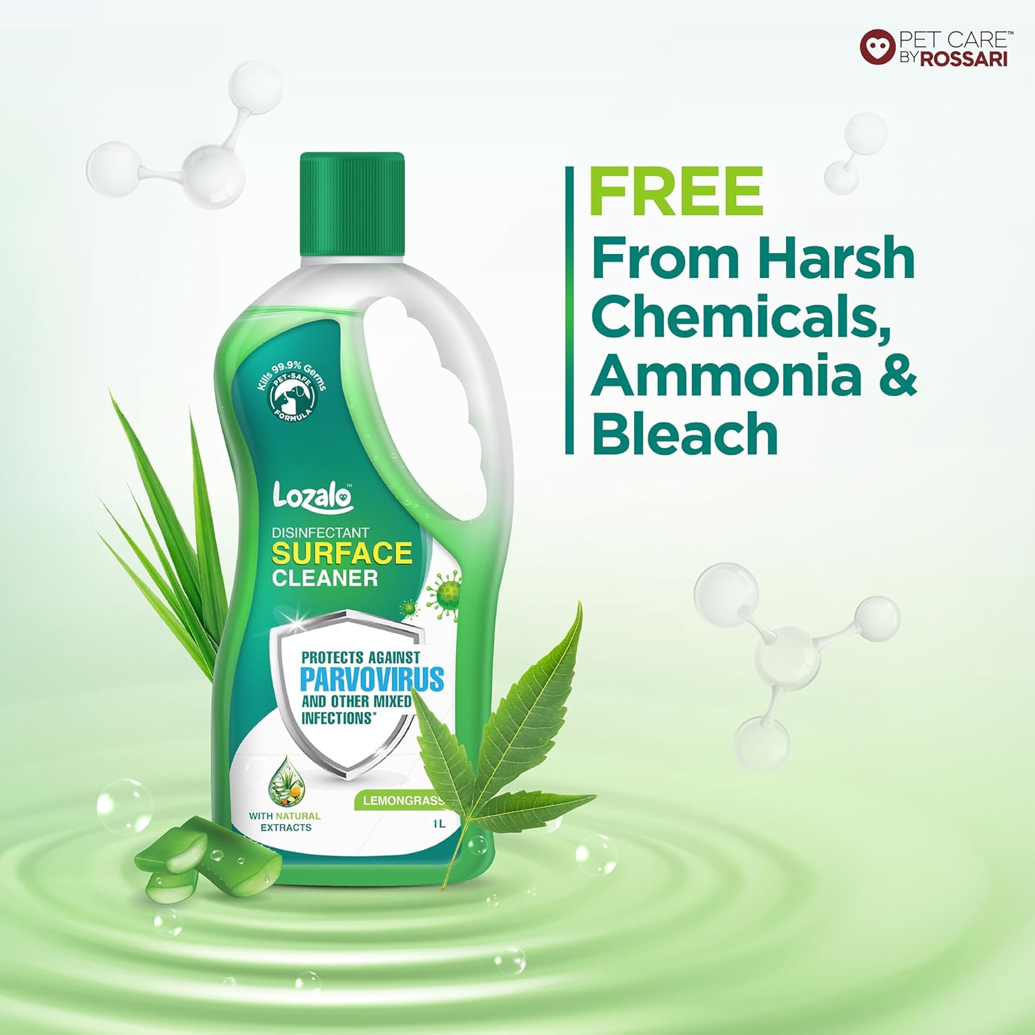 Free From Harsh Chemical, Ammonia & Bleach- Leaves no residue post cleaning. Ensures a safer haven for you and your family.For Sparkling clean, Non Slippery & Hygienic Home- Ensures floors are clean and spotless making every corner germfree.Pet -Specific Stain Remover- Removes tough stains efficiently.Tick & Flea Repellent- Powerful blend of lemongrass, aloe vera and turmeric naturally repels ticks and fleasFor Long Lasting & Rejuvenating Fragrance