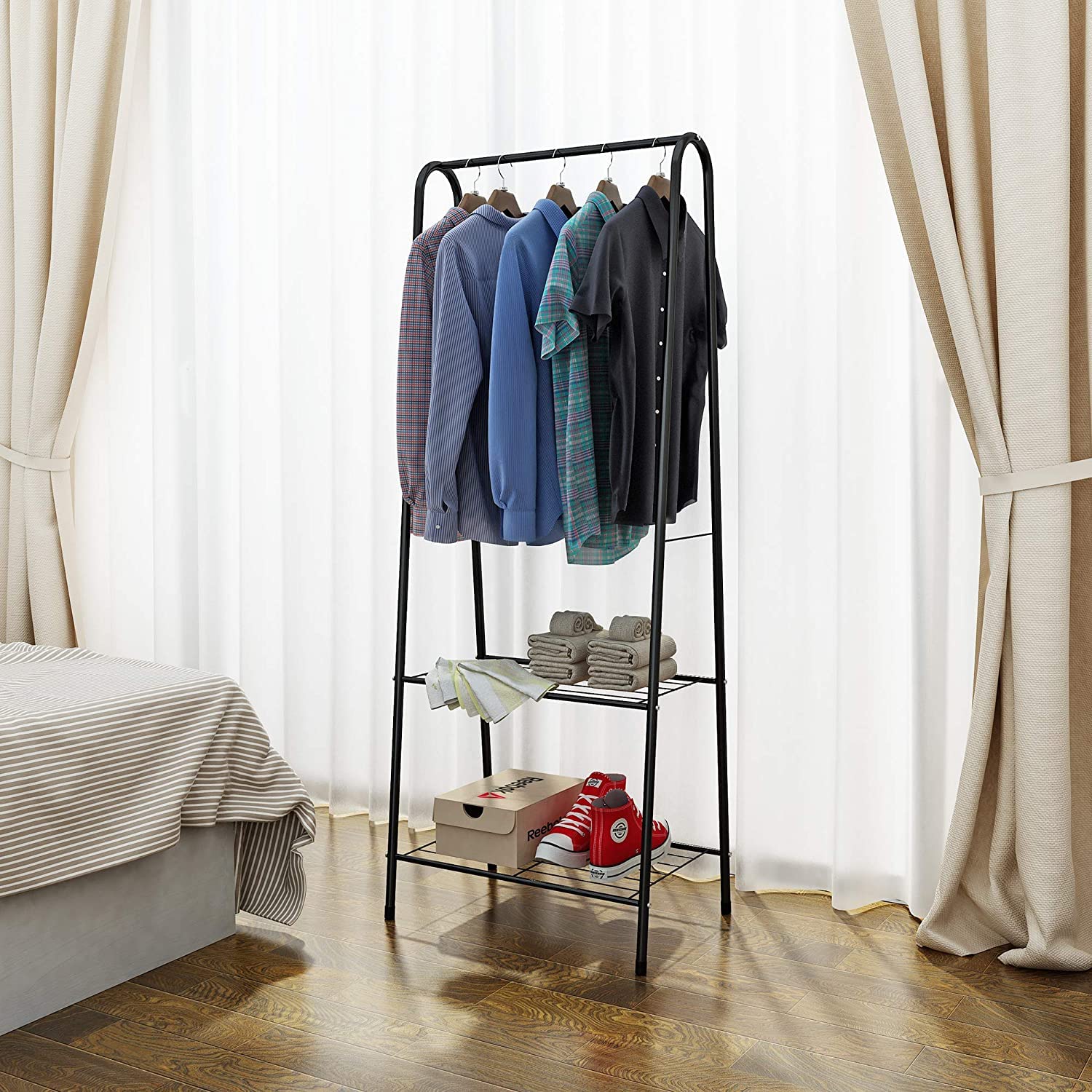Multi-Functional Rack: The “A” shaped design of this clothing rack appears simple easy & decent and can well match with the home. It is suitable for indoor as an organizing rack or outdoor as clothes drying rack.