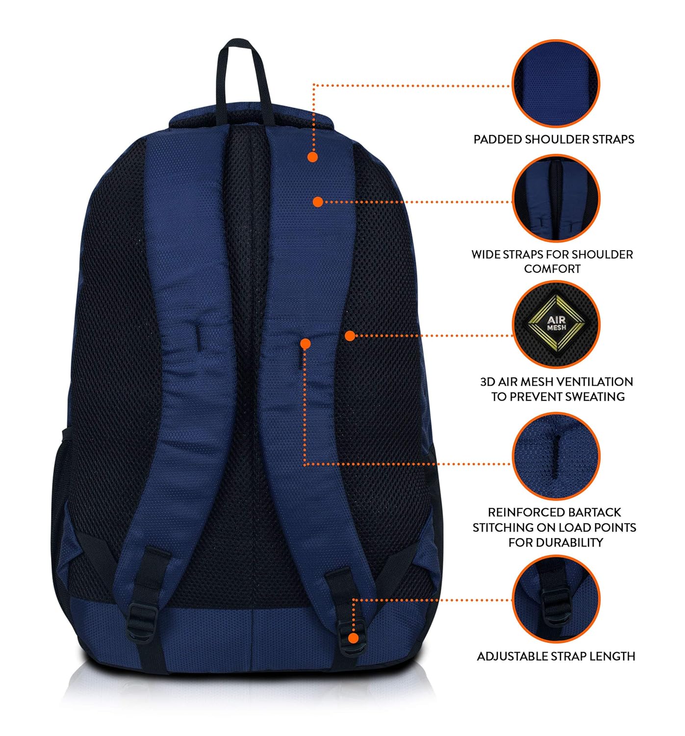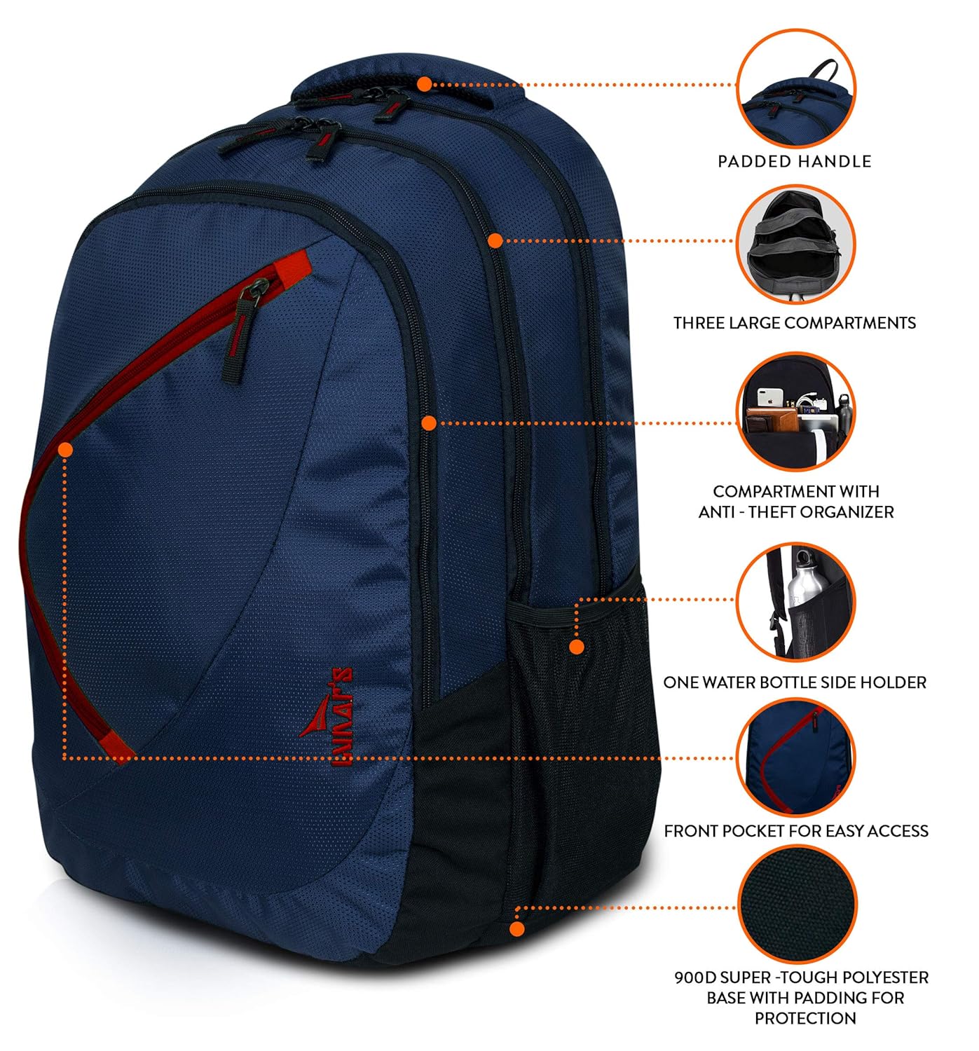 Lunar Coment 35L Backpack is the ideal school/college/travel bag for your daily needs. It has 3 large compartments, 1 front zippered pocket, 1 side water bottle holder. An anti-theft internal organiser helps to secure your cables, keys and other valuable items. Padded shoulder straps and back panel ease the weight of heavier loads. Top-mounted, padded handle and reinforced haul loop for quick grab Use : College Bag, School Bag, Casual Bag, Stylish Bag, Daily use.