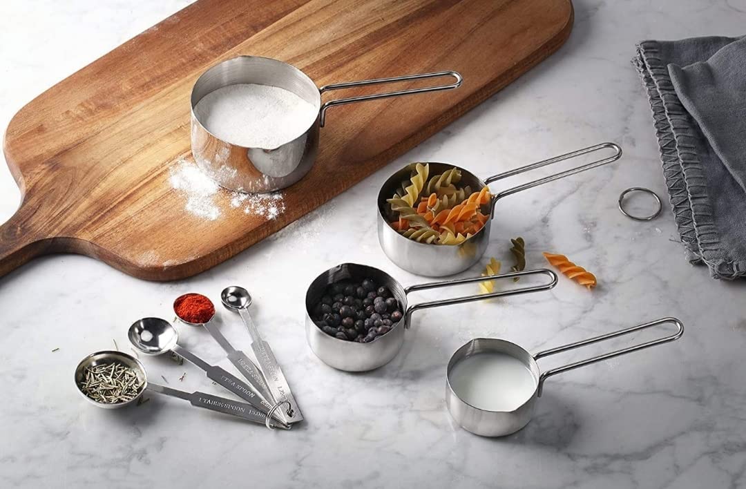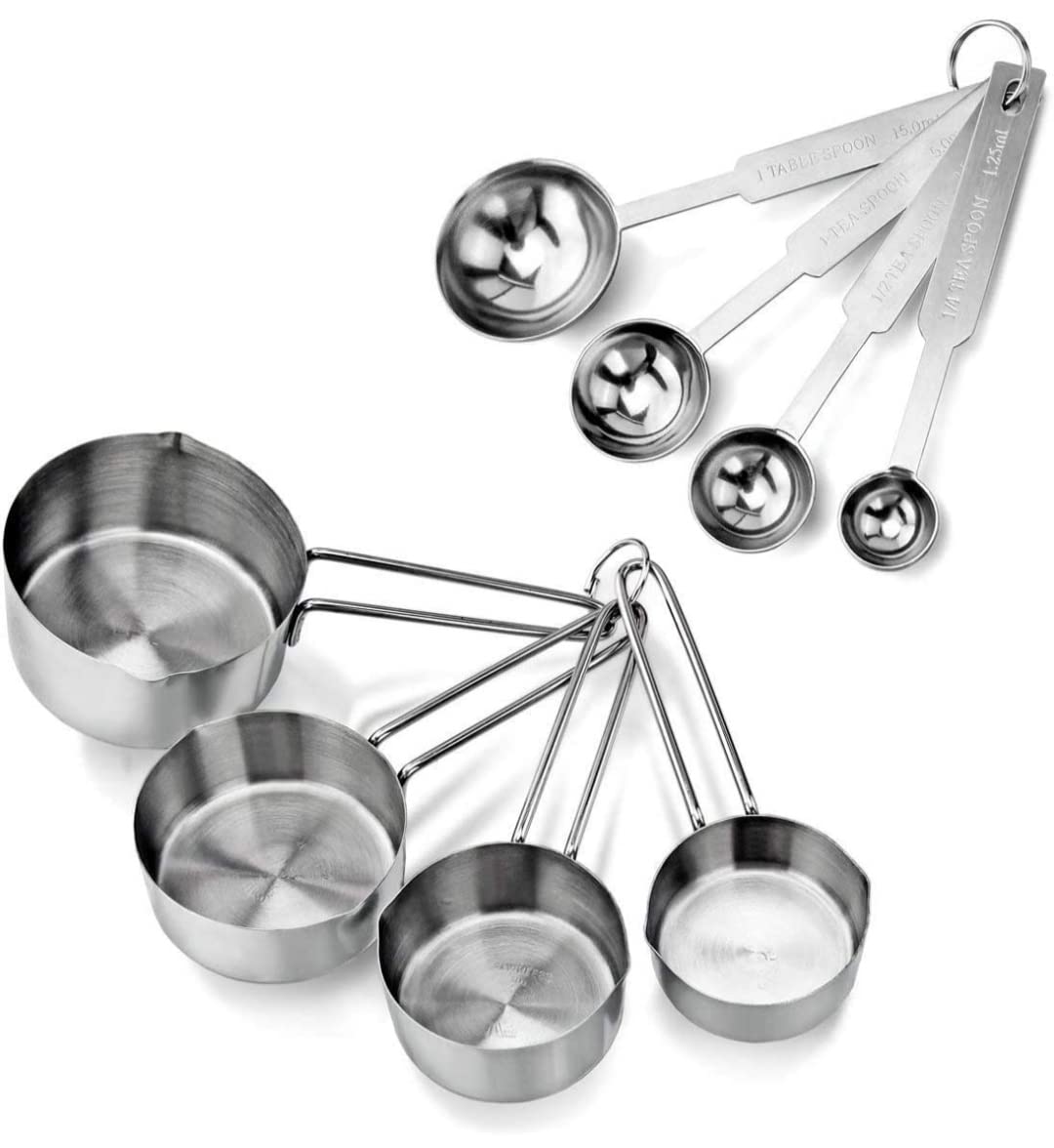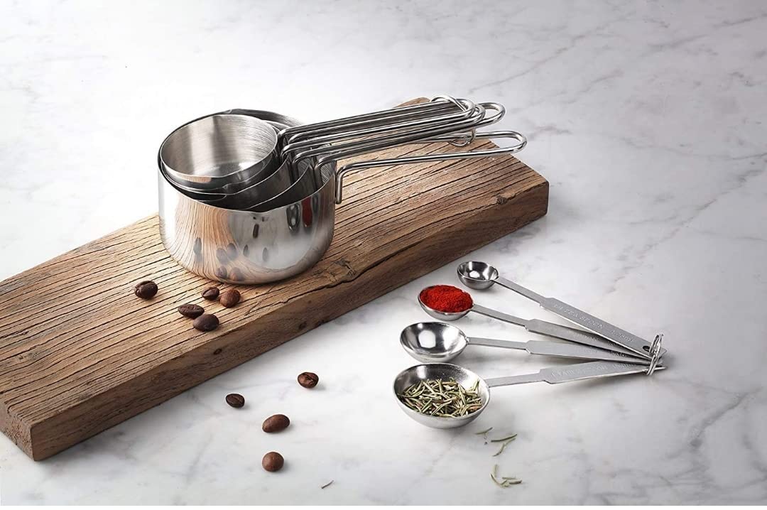 Dynore Stainless Steel Measuring Cups & Spoon Combo – Essential Kitchen Gadgets for Versatile Set for Dry or Liquid Ingredients with Handles – Set of 4 Measuring Cups and 4 Measuring Spoons