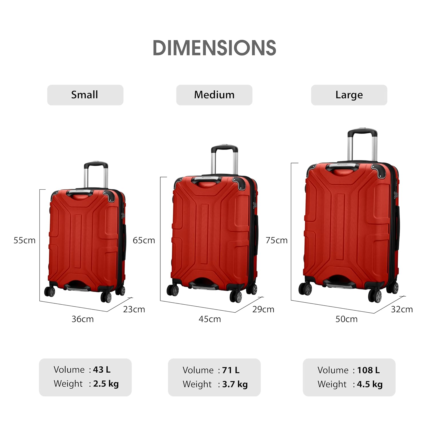Twin Travel Companions: Two perfectly sized bags , check-in medium bag (45 x 29 x 65 cm) weighing 3.7 kgs and check-in large bag (50 x 32 x 75 cm) weighing 4.5 kgs for stress-free travel.