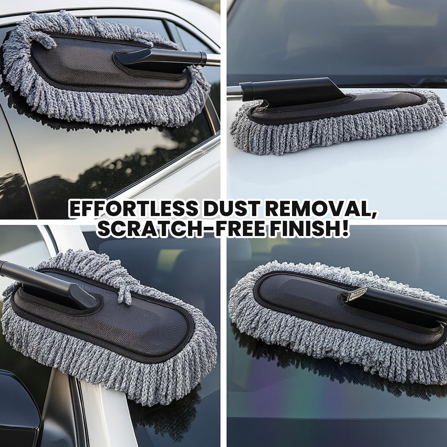 Scratch-Resistant Design: The car duster, crafted with microfiber design, removes dust effortlessly without causing scratches or surface damage. It safely cleans spray paint, powder coating, and polished surfaces while maintaining your car’s pristine condition.