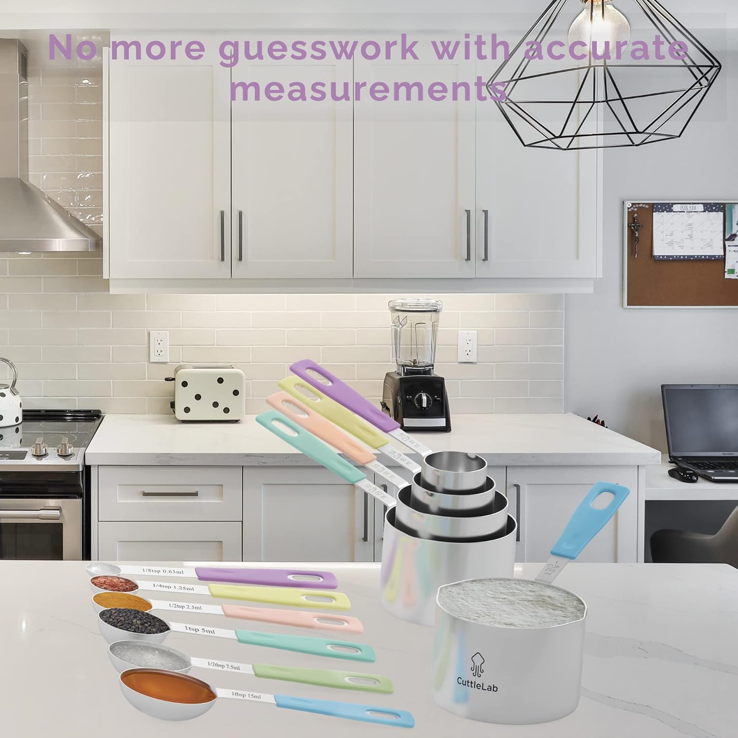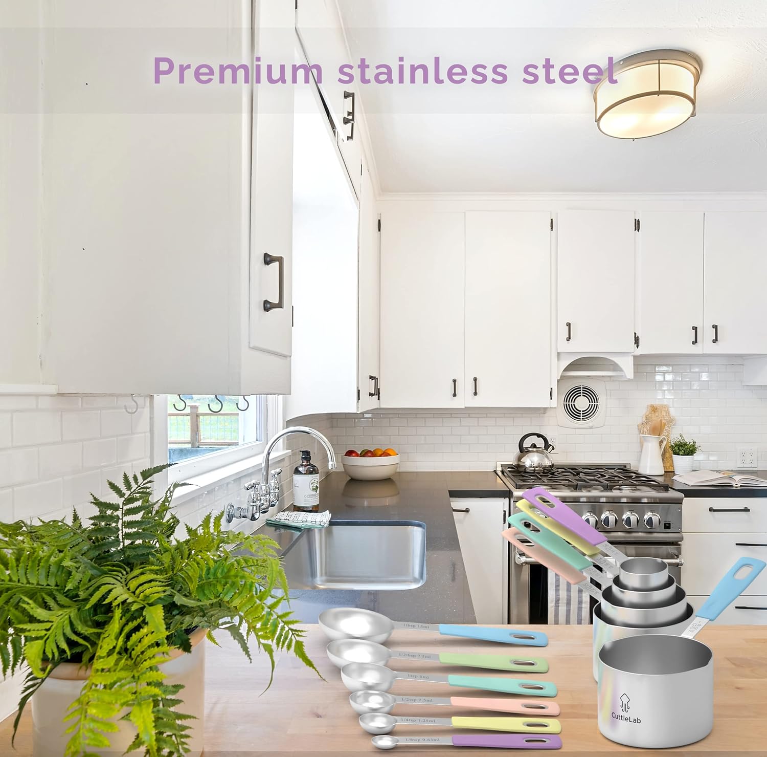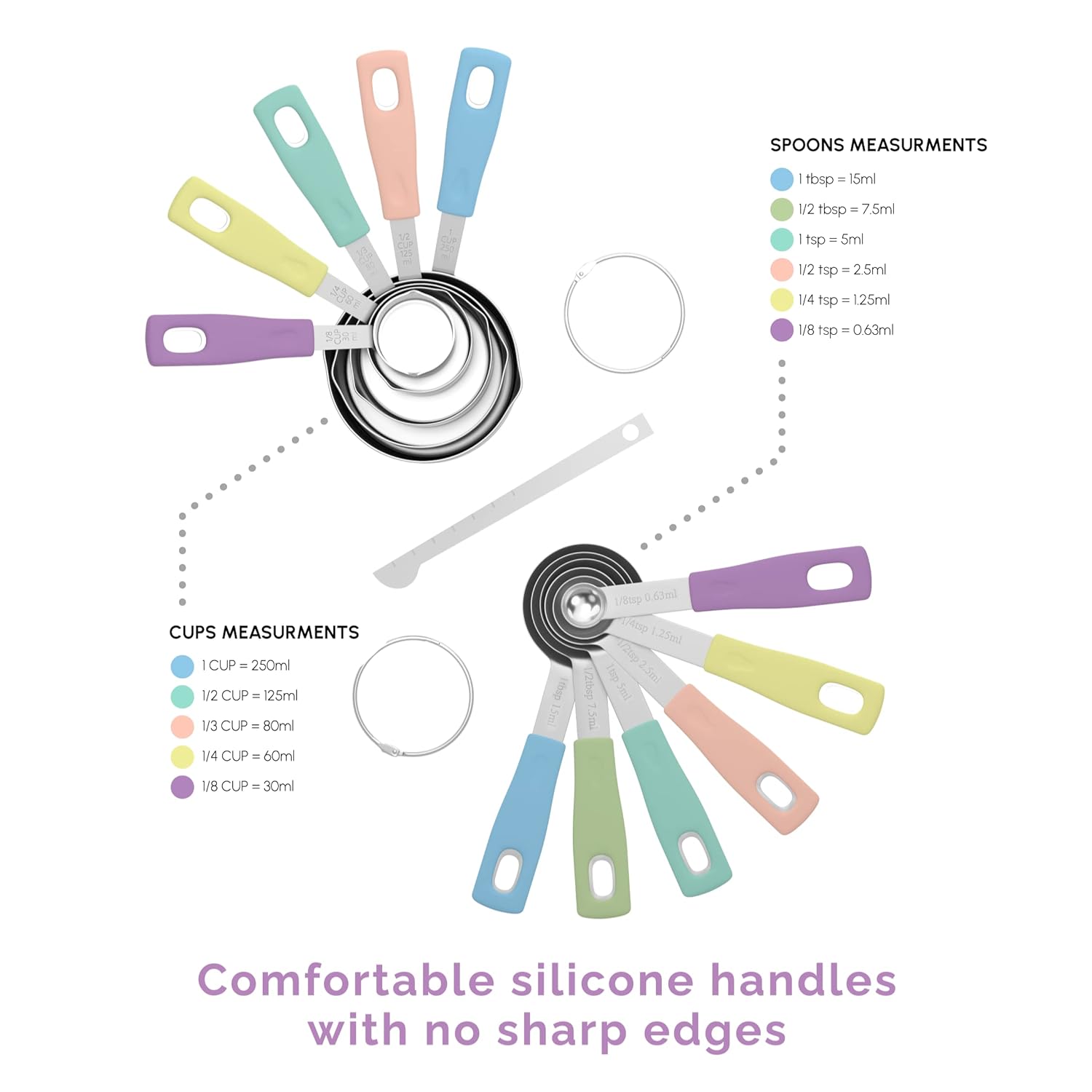 Home Accessories Measuring Cups and Measuring Spoons Set of 14 – Stainless Steel Measuring Cups and Spoons Set, Includes 1/8 Teaspoon Measuring Spoon, 1/8 Cup Measuring Cup, Leveler Dry (14,Cotton Candy)