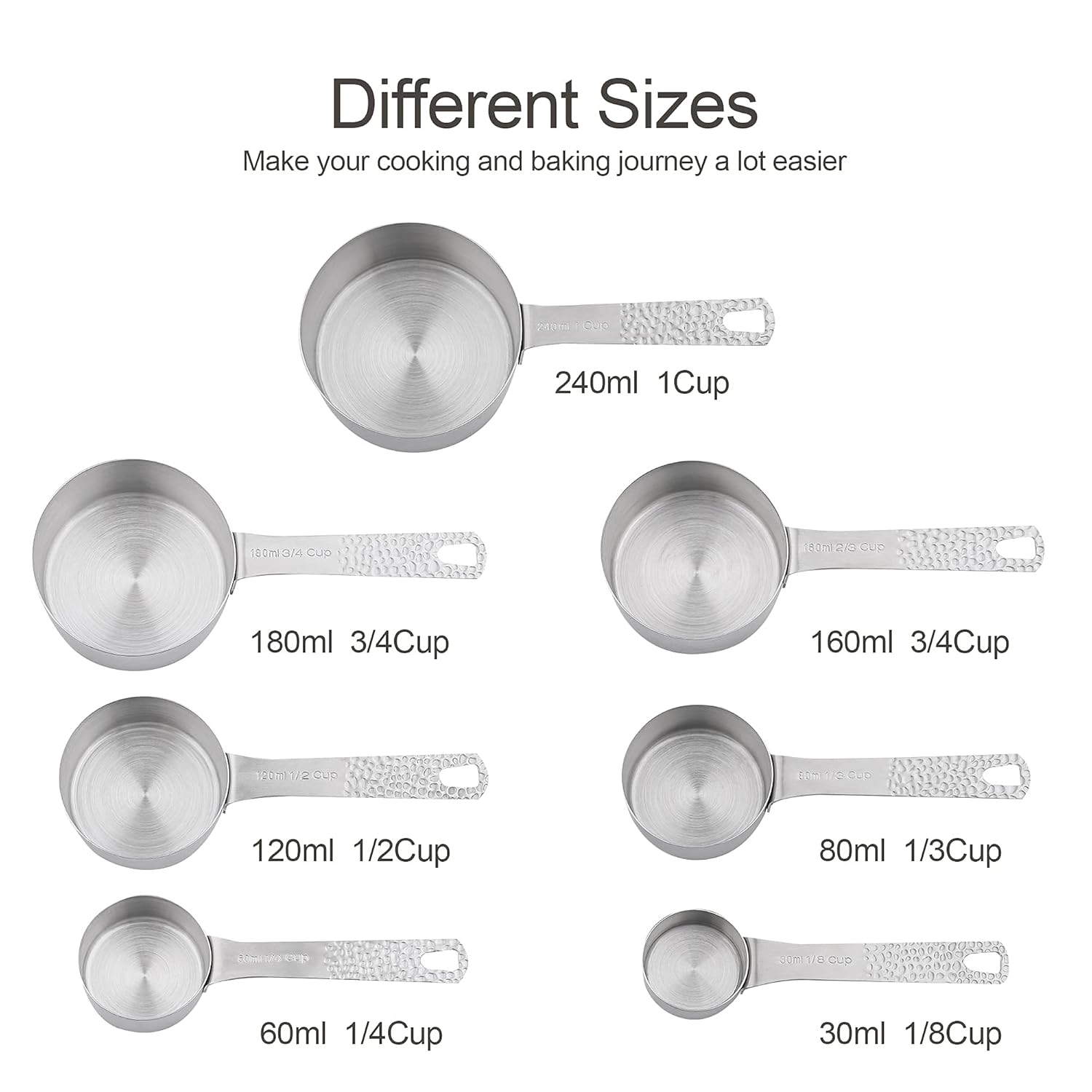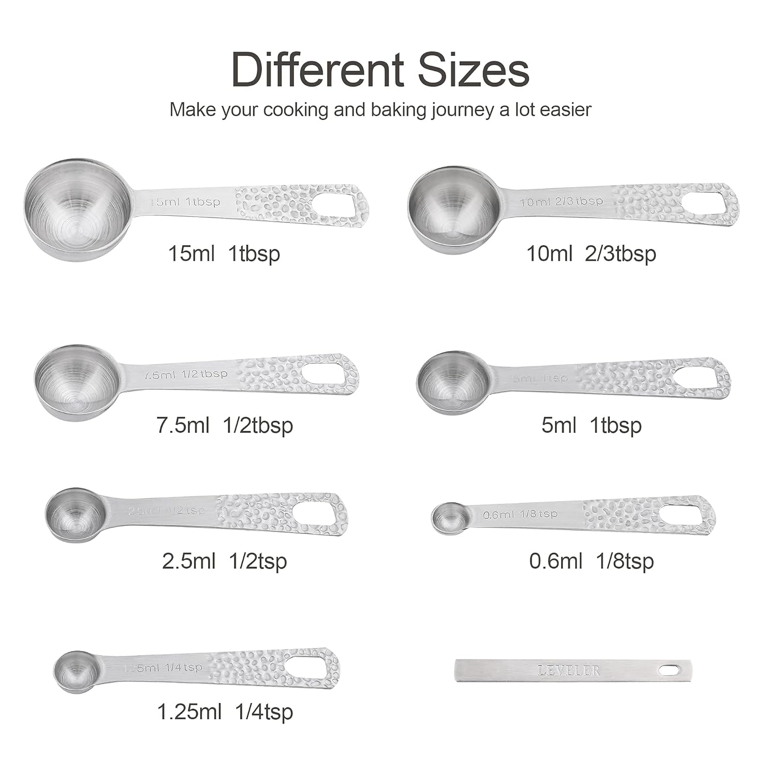 18/8 Steel Measuring Cups and Spoons Set: Made of 18/8 (304) stainless steel, they will not