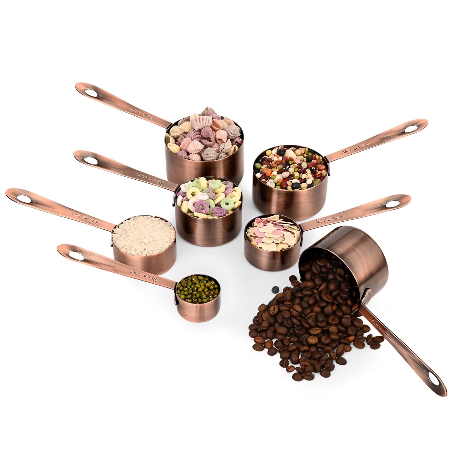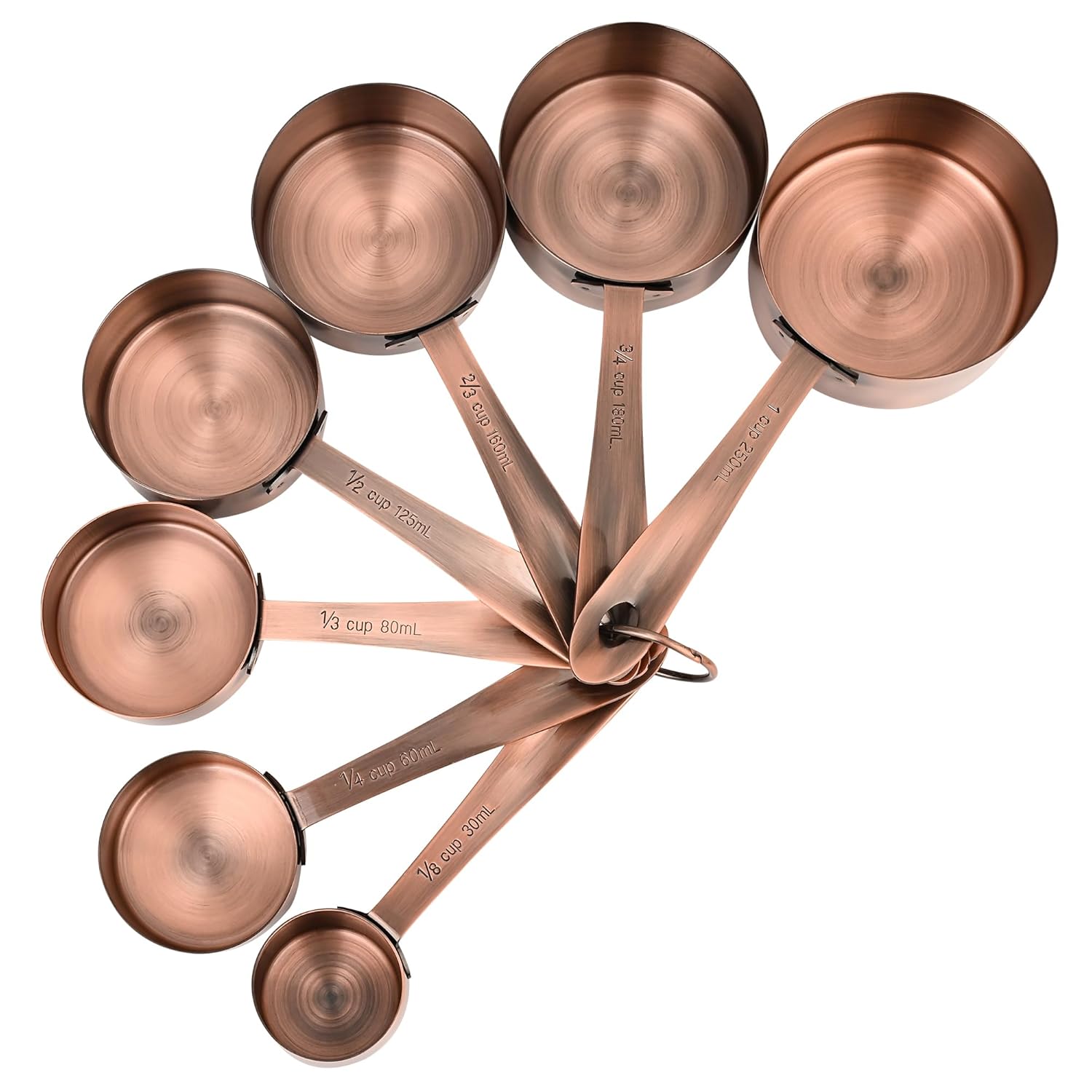 3. Copper Measuring cups and spoons with Round shape to easily stack them into each other for easy storage