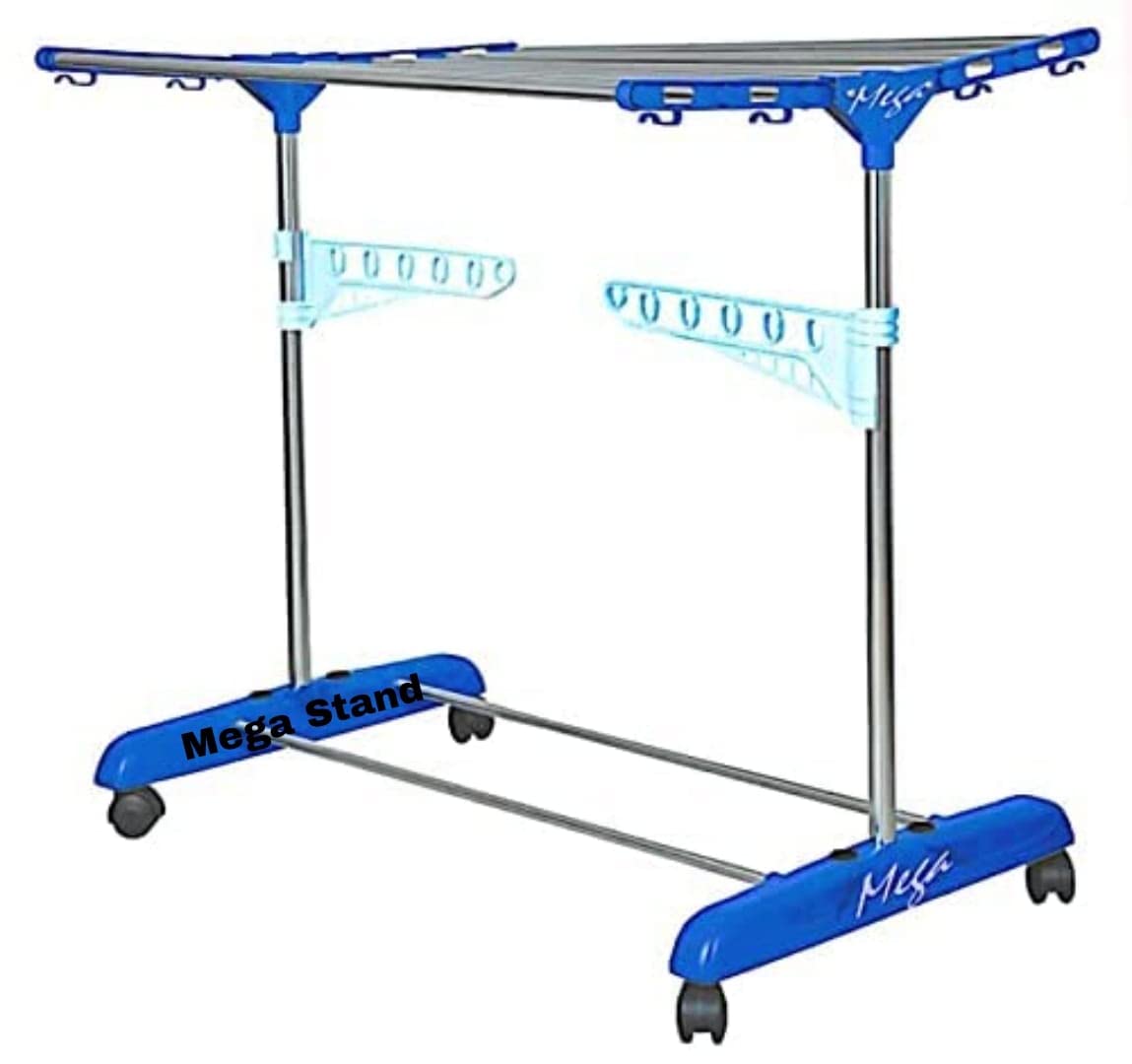 Home Home Mega Brands Stand Stainless Steel Clothes Stand for Drying Indian Made Cloth Drying Stand for Home | – 1 Tier | Blue |