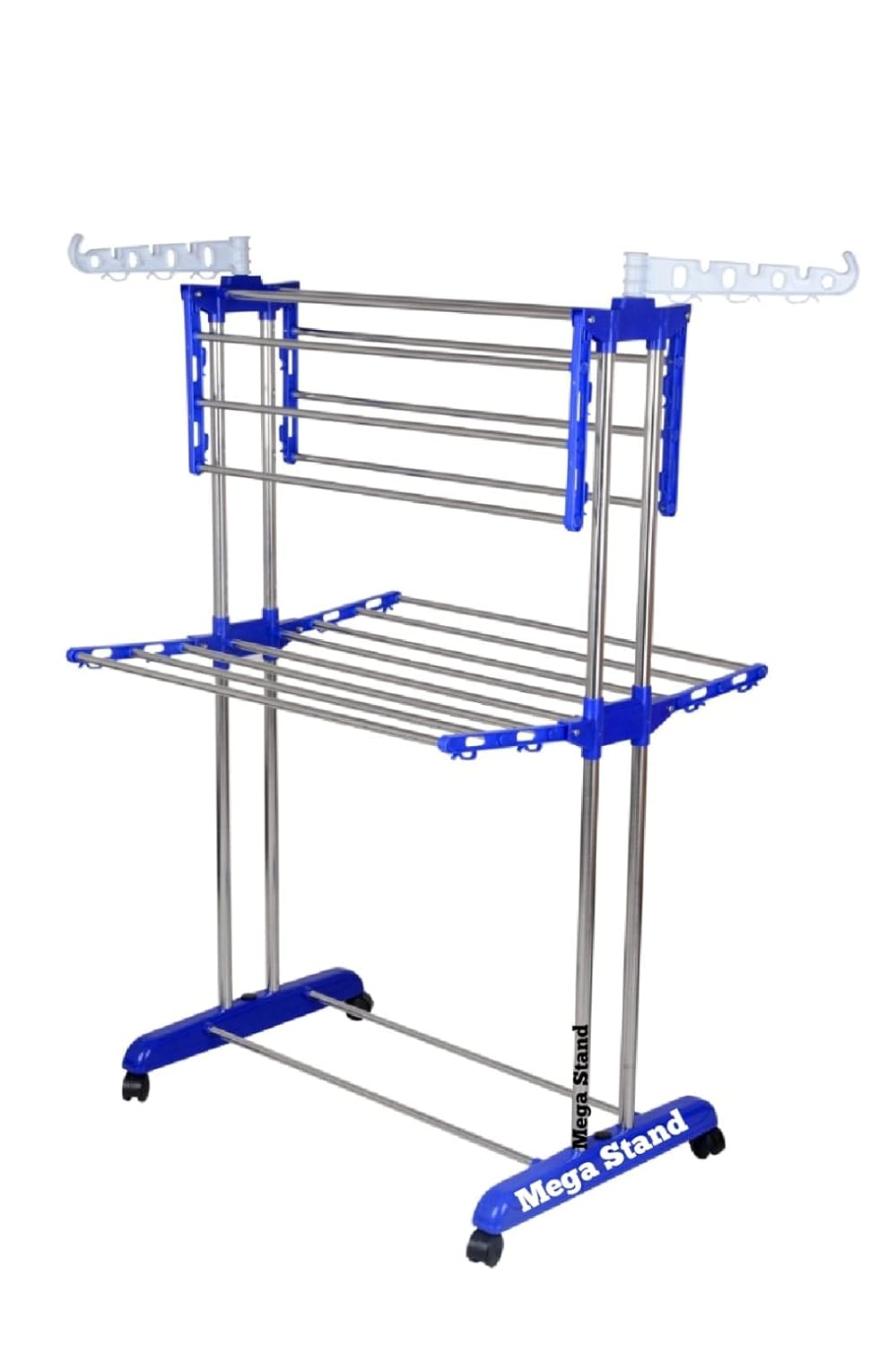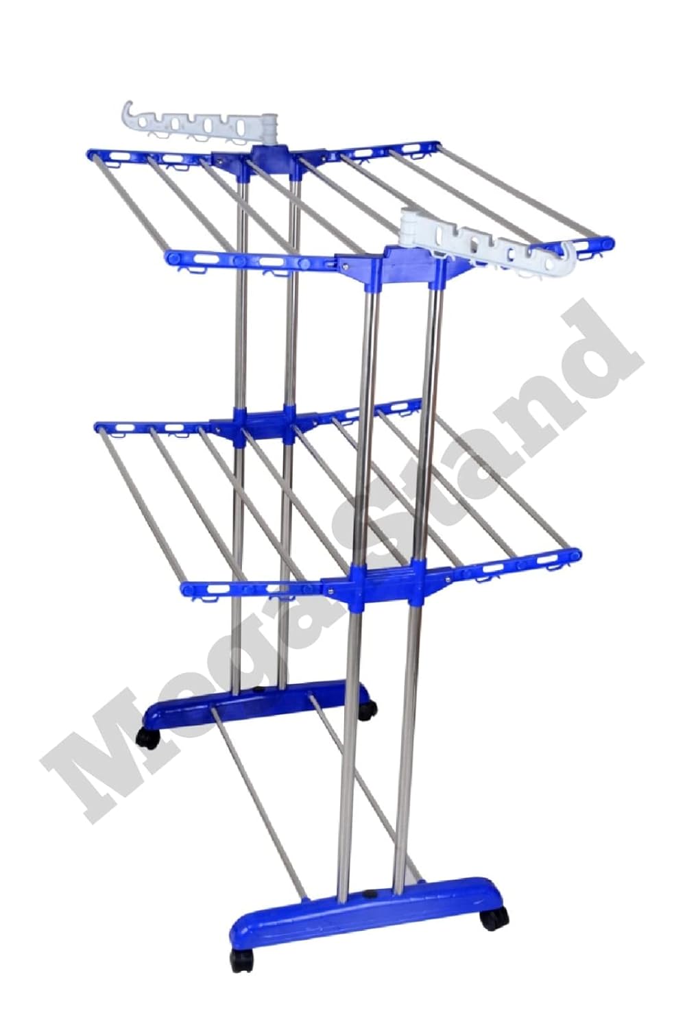 The Mega stand Cloth Drying Stand is a high-quality stainless steel 3-tier foldable clothes dryer rack designed for efficient and convenient clothes drying at home. Its sturdy stainless steel construction ensures durability and longevity, making it a reliable choice for everyday use.