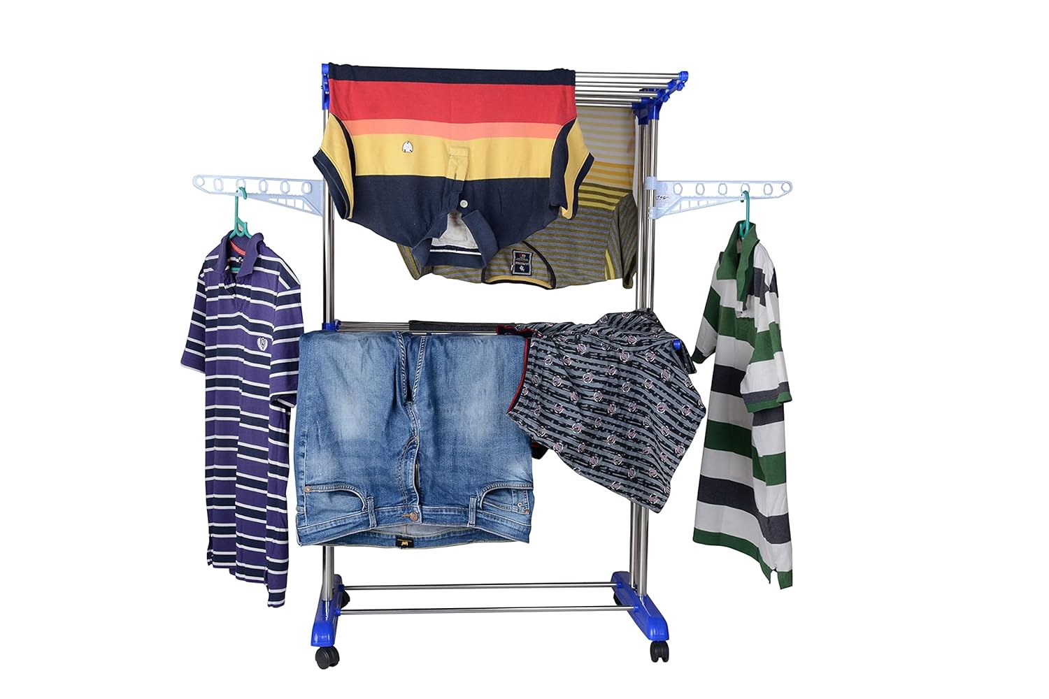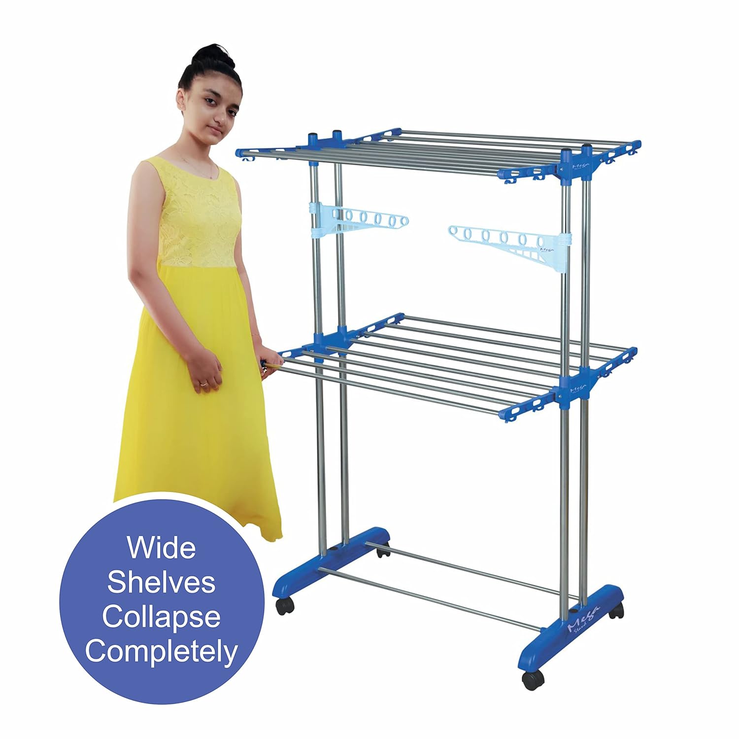 Be the first to review “Mega Clothing Stand | Stylish Garment Stand | Hanging Rack | Clothes Hanger for Balcony & Bedroom | 2-Tier Folding Clothes Rail Clothes Horses Drying Rack (Royal Blue)” Cancel reply