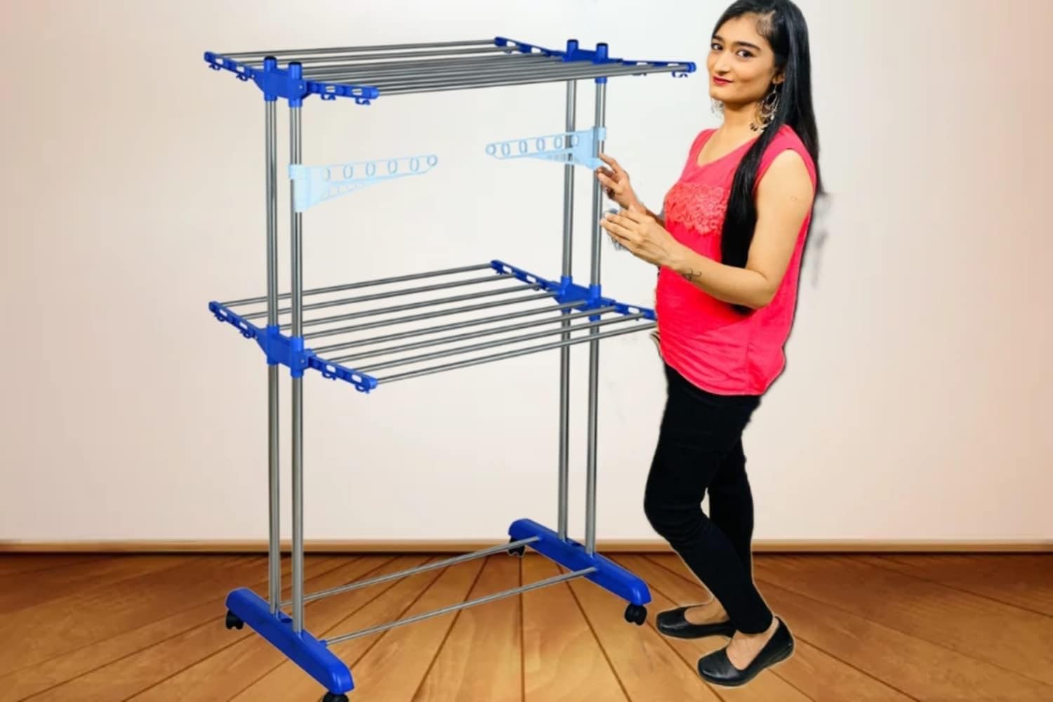 4 retractable trays and 2 side wings for airing towels, socks, shirts, sweaters, hats, coat, suits, dresses, shoes etc. Each airer can be folded down to conserve space, you can dry clothes on multiple rails, 7 hooks on 2 side wings for additional hanging drying.