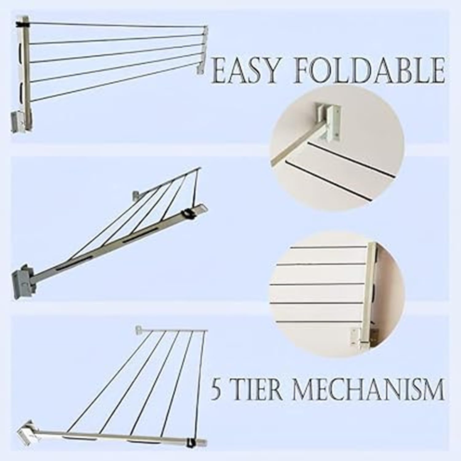 𝐄𝐚𝐬𝐲 𝐭𝐨 𝐢𝐧𝐬𝐭𝐚𝐥𝐥: This wall mounted cloth drying stand is easy to install. All you need is a drill and some screws. The instructions are clear and easy to follow.
