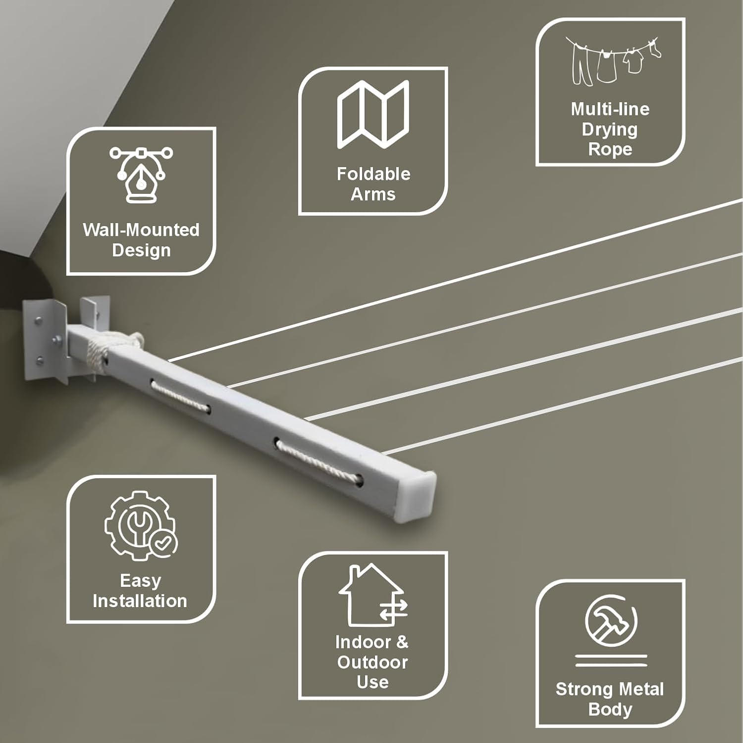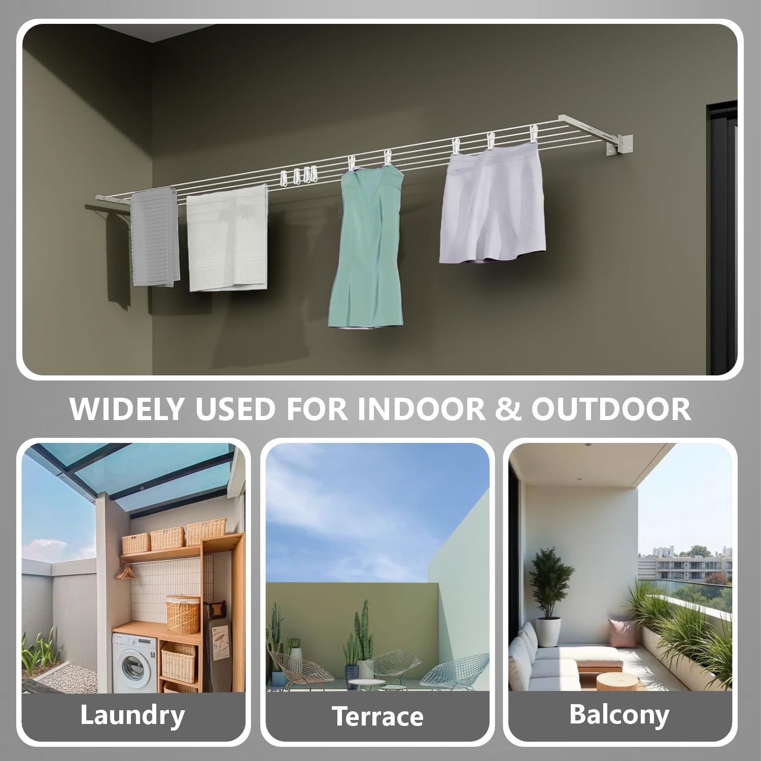 Metal Foldable Wall Mount Cloth Drying Stand Cloth Drying Stands Wall Mounted Wall Hanging Cloth Stand for Drying Clothes in Balcony Wall Hanger for Clothes Drying Color – White