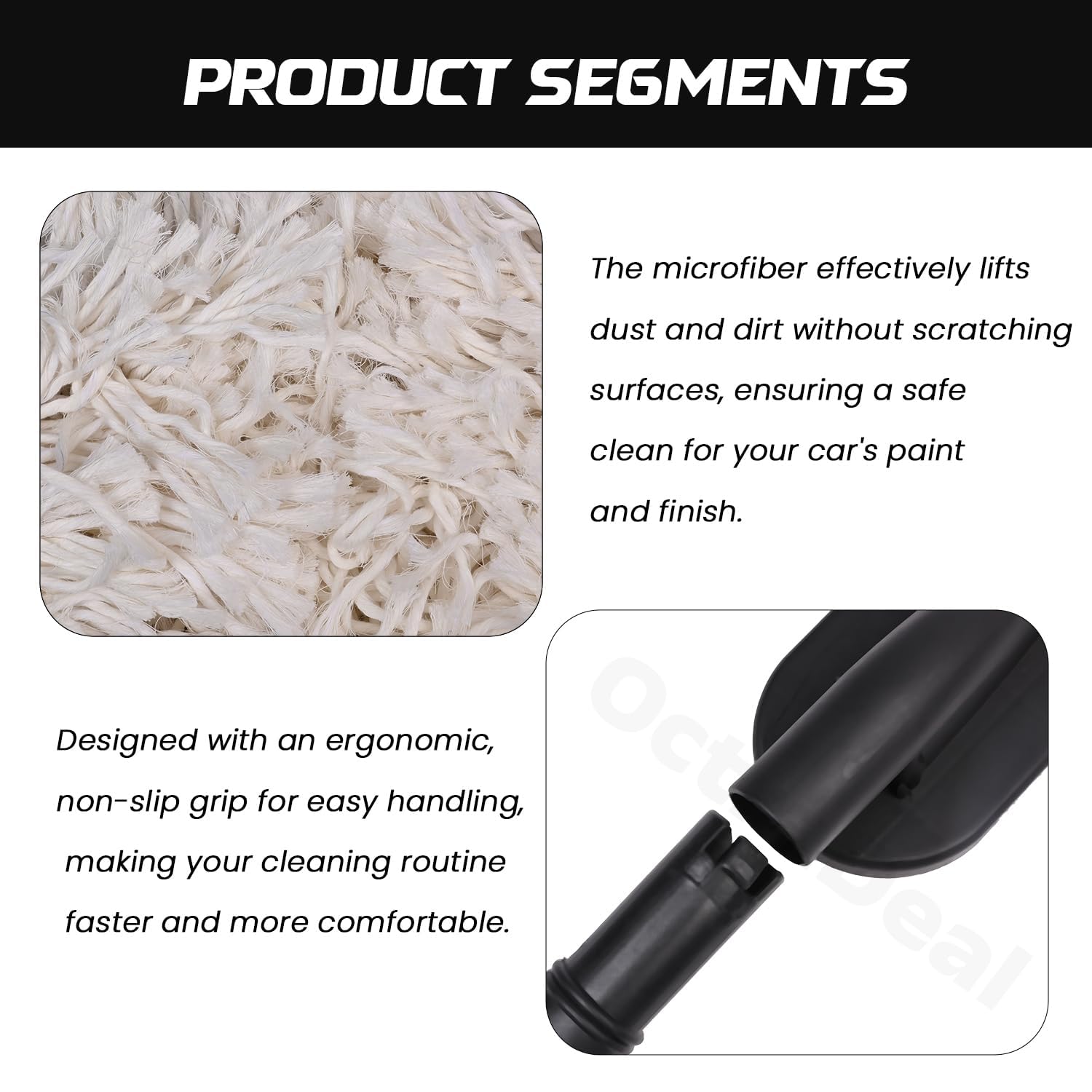 Wax Coated Microfiber Head:- Premium Wax Infused Fibers Attract And Trap Dust Without Scratching Paint Or Surface
