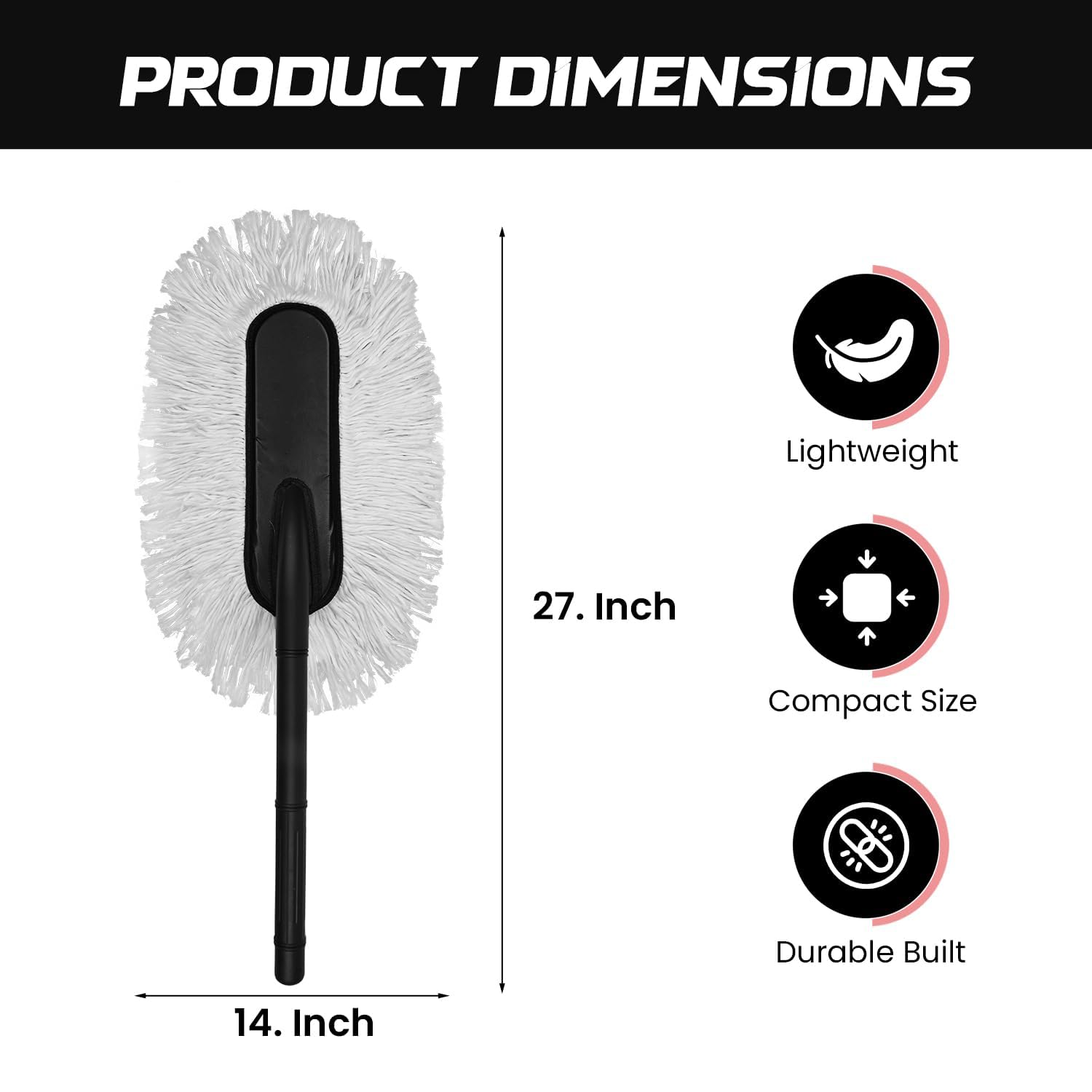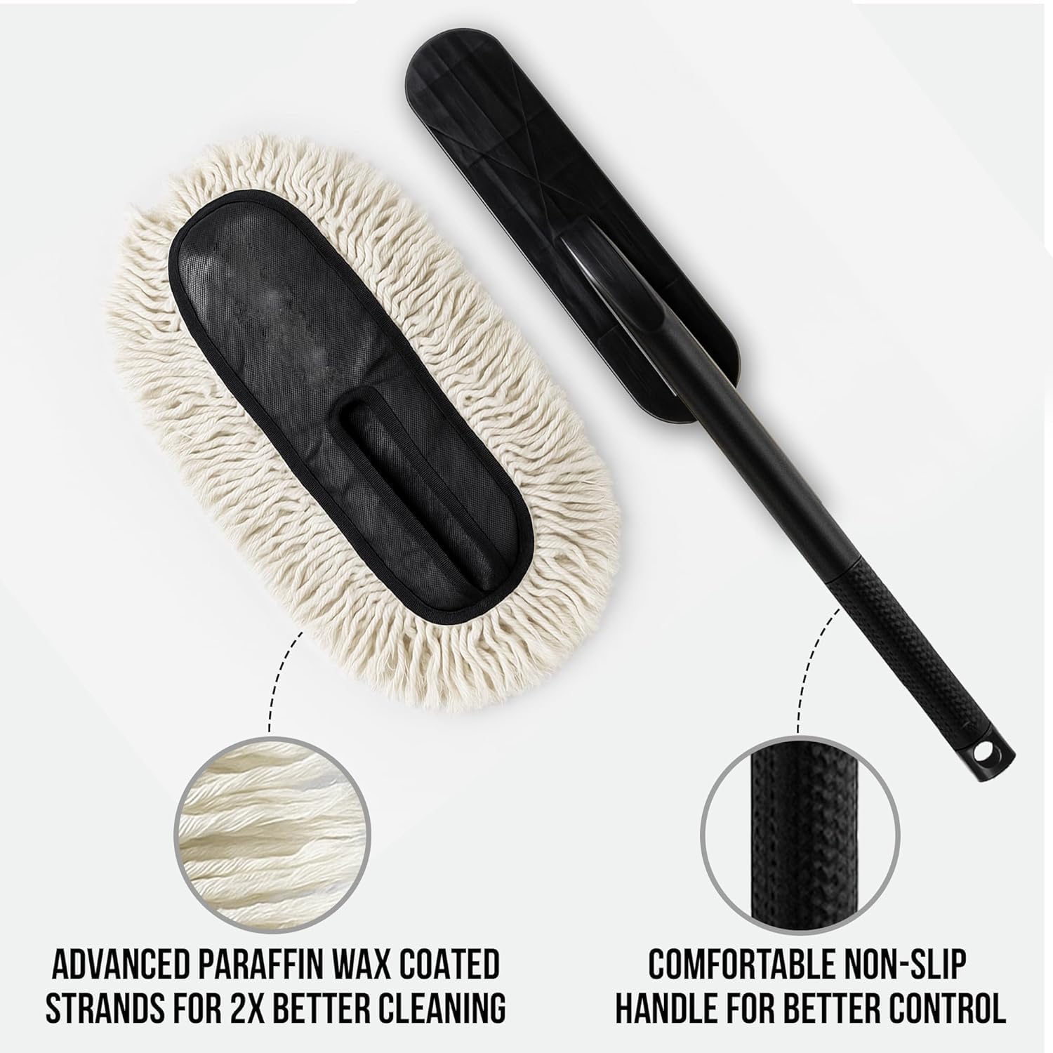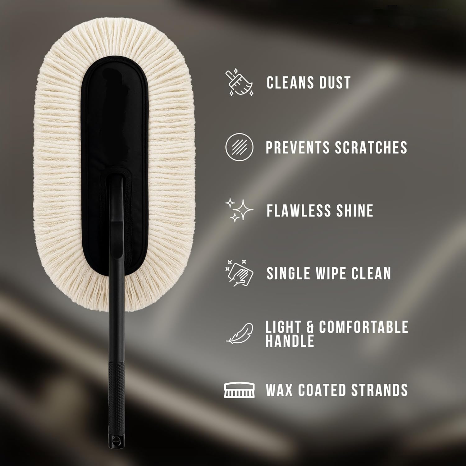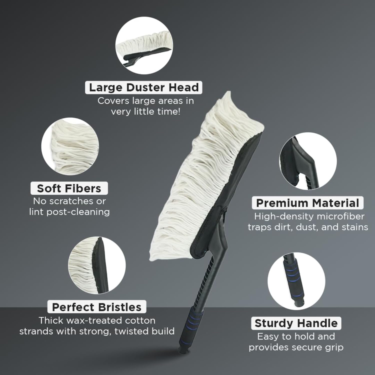 Microfiber Car Duster Brush with Long Handle | Reusable & Wax-Treated Microfiber Cotton Strands | Lint-Free & Scratch-Free Cleaning Tool for Cars, SUVs, Trucks & Bikes