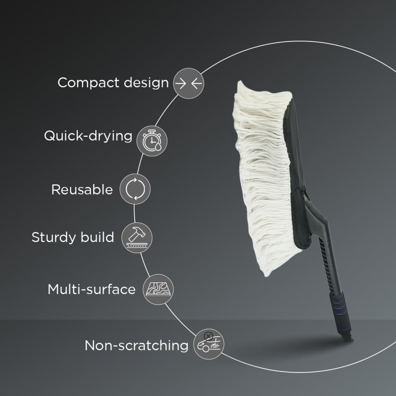 Home Accessories Microfiber Car Duster Brush with Long Handle | Reusable & Wax-Treated Microfiber Cotton Strands | Lint-Free & Scratch-Free Cleaning Tool for Cars, SUVs, Trucks & Bikes