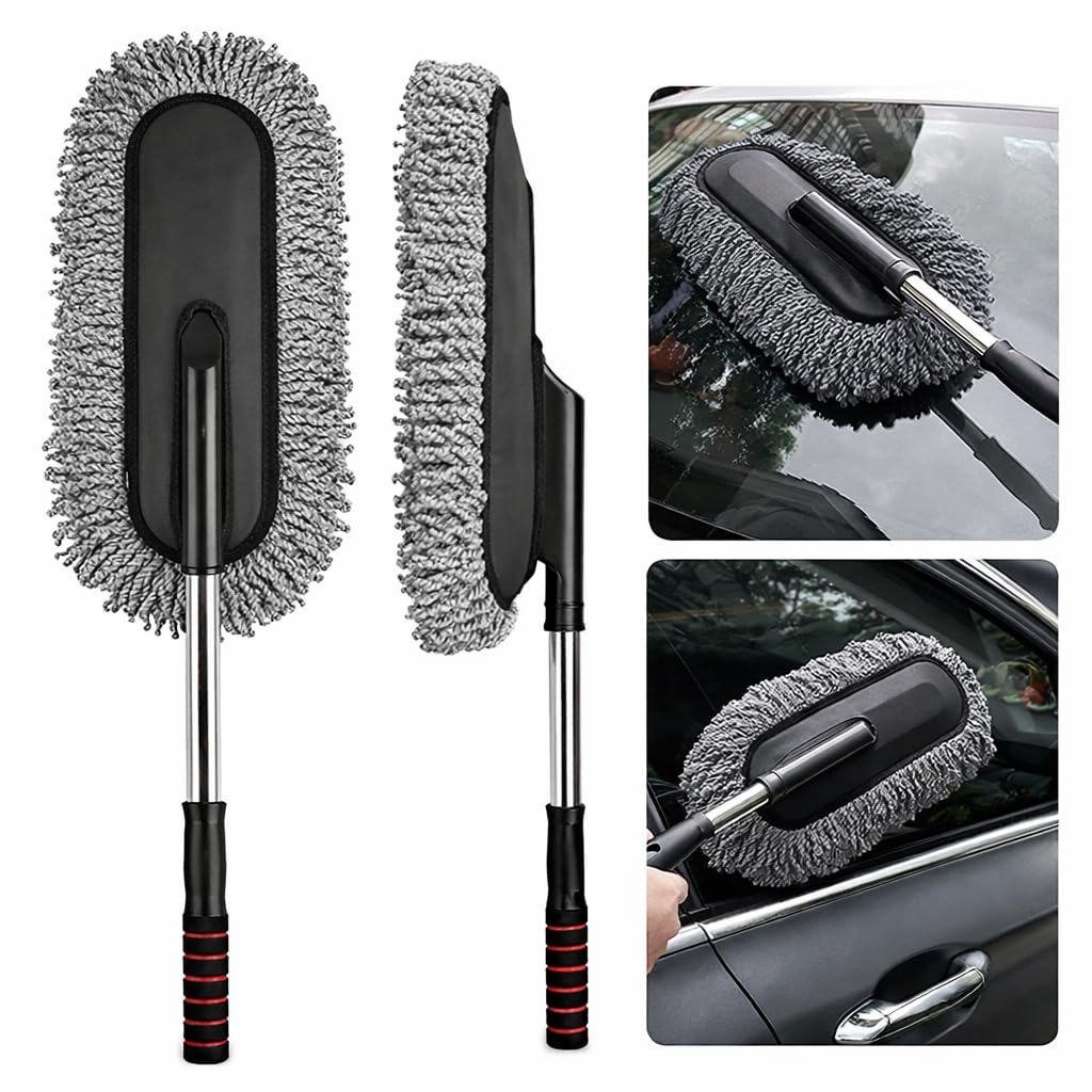 Microfiber Car Duster with Extendable Handle – Car Cleaning Brush for Interior Exterior, Scratch Free Dust Cleaner for Dashboard, Windshield, SUV, Car Cleaning Accessories