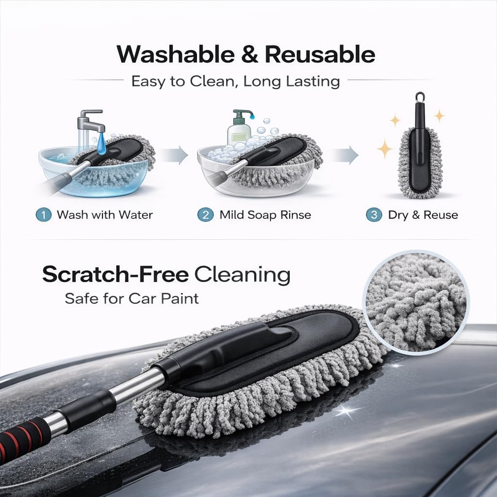3️⃣ 💧 Car Dust Cleaner – Washable Reusable Tool Car dust cleaner microfiber duster can be washed and reused for long lasting cleaning use.