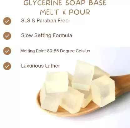 High Transparency / Crystal Clear Soap Base made with high Quality Ingredients. Sulphate (SLS/SLES) Free, Paraben Free, 100% Vegetarian. Optimum pH level, Mild to Skin. TFM above 40%, Contains high amount of glycerin ; helps with skin dryness due to its moisturizing properties.