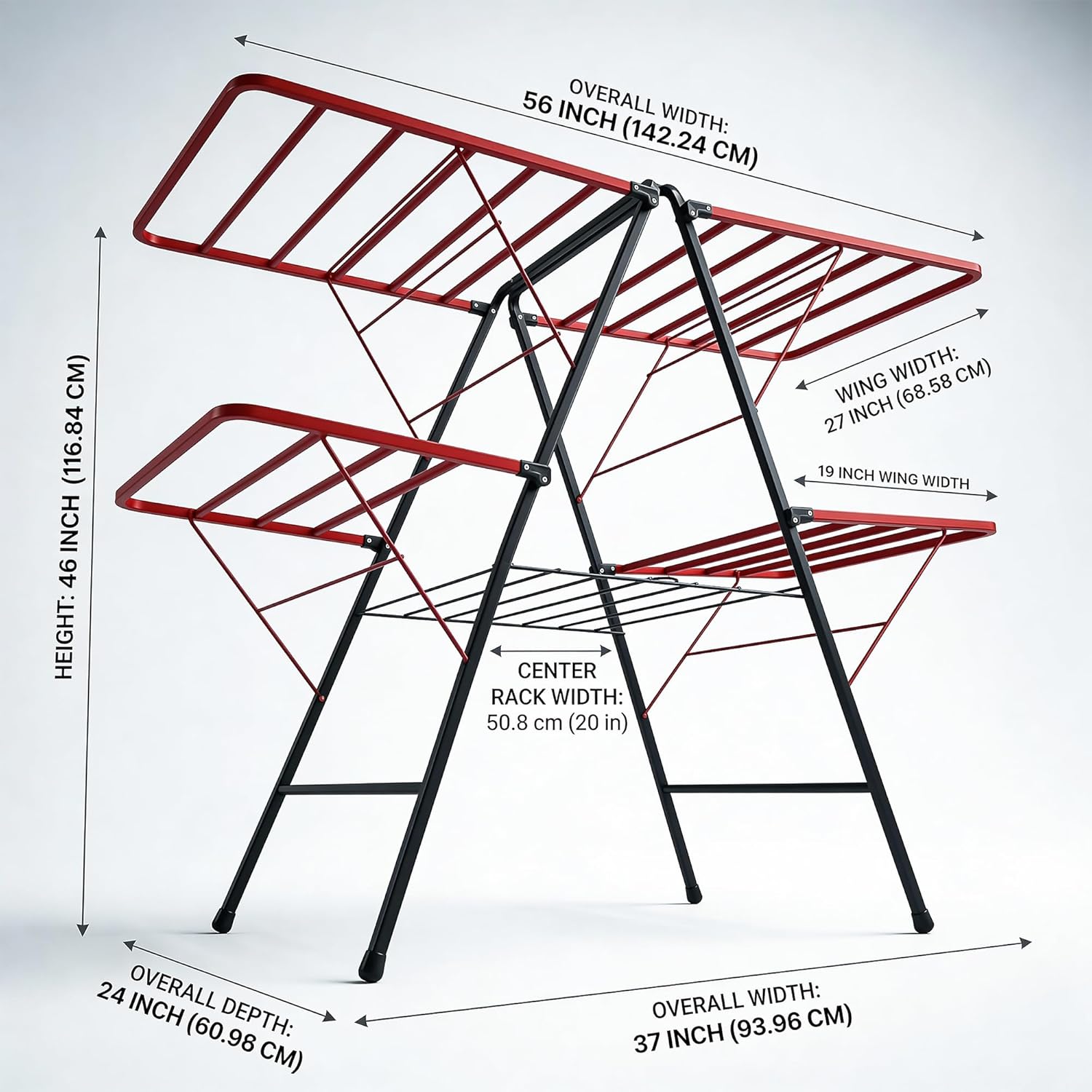 • Spacious Drying Area: Wide multi-wing structure provides ample space for drying daily clothes, towels, and bedsheets.