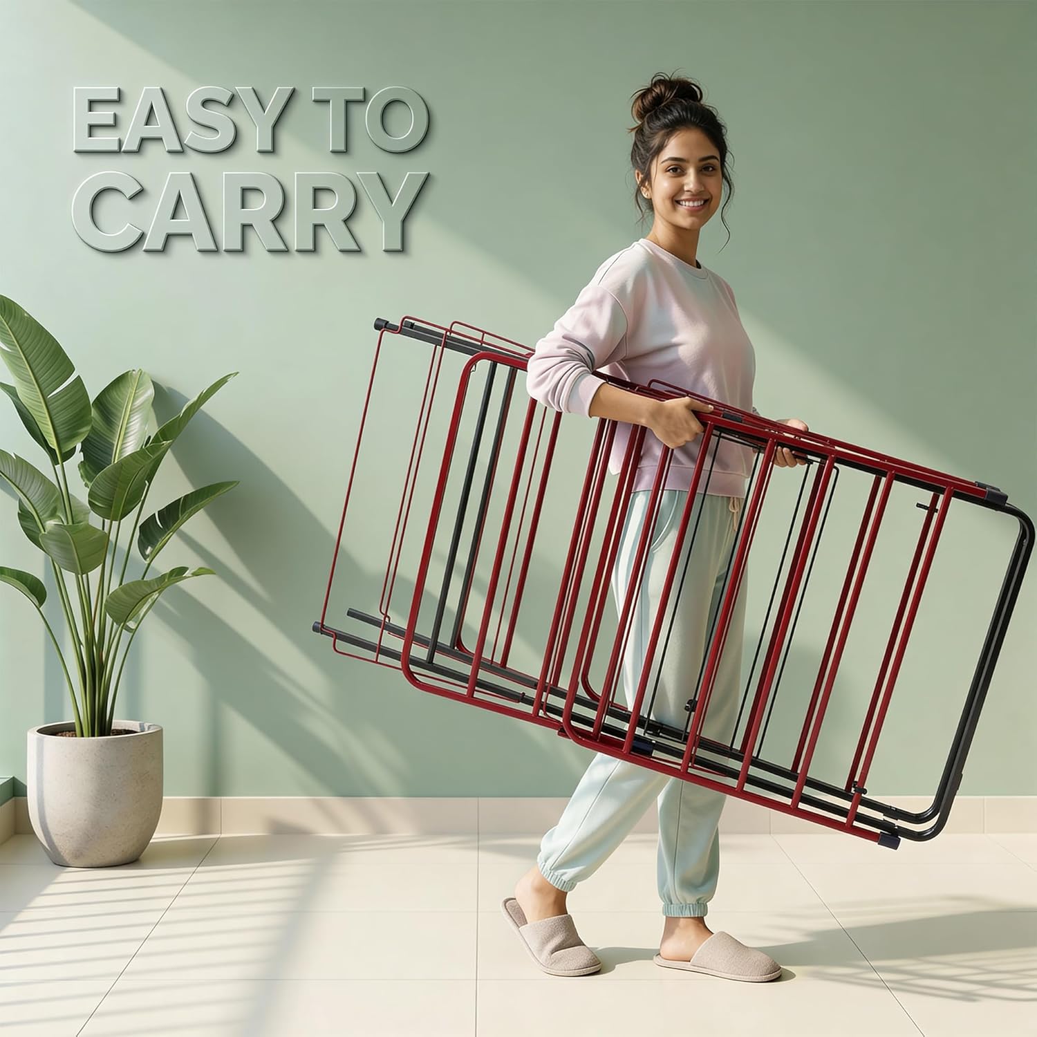 The metal frame is designed to provide stability during use, while the powder-coated surface helps maintain appearance over time. Suitable for everyday laundry routines in Indian homes.