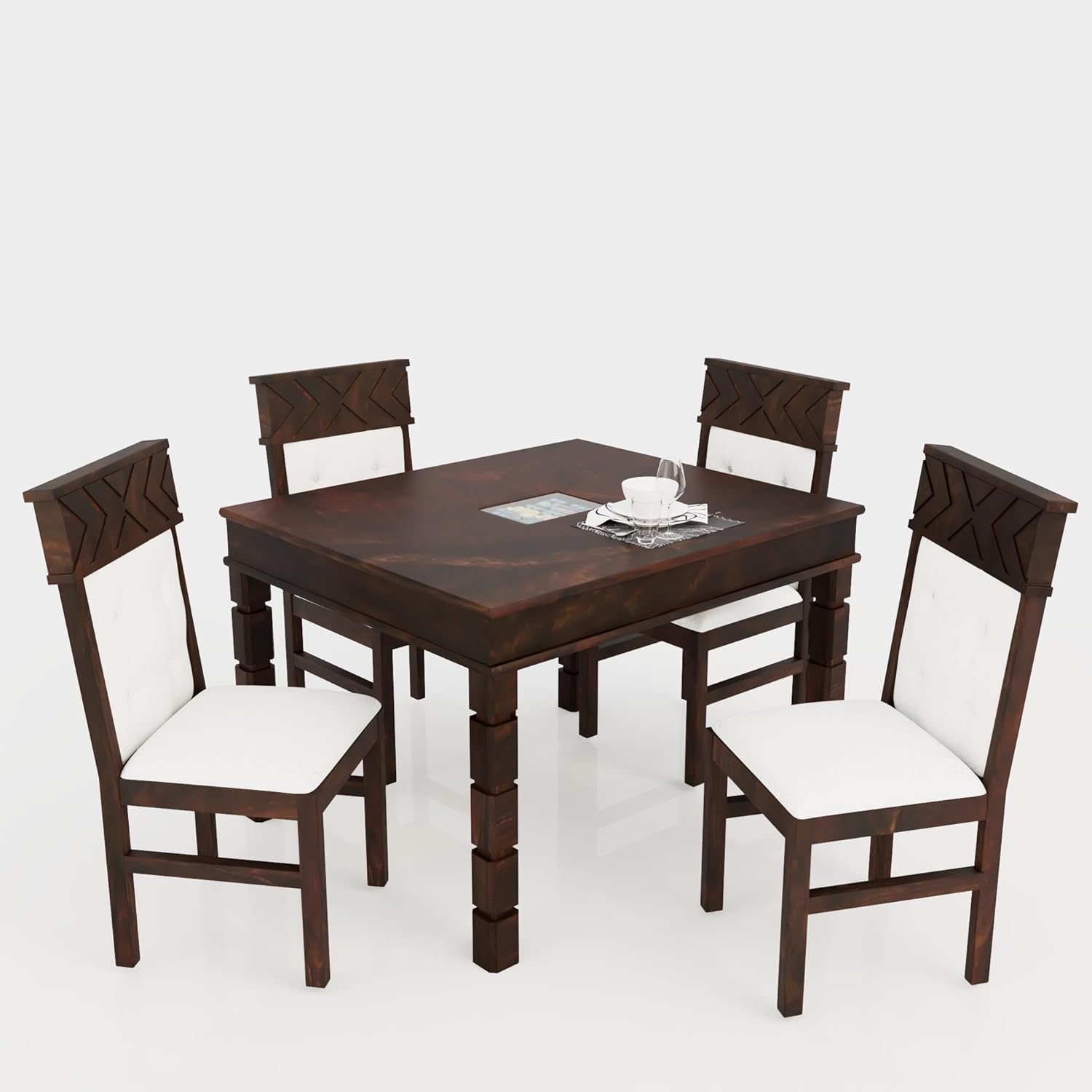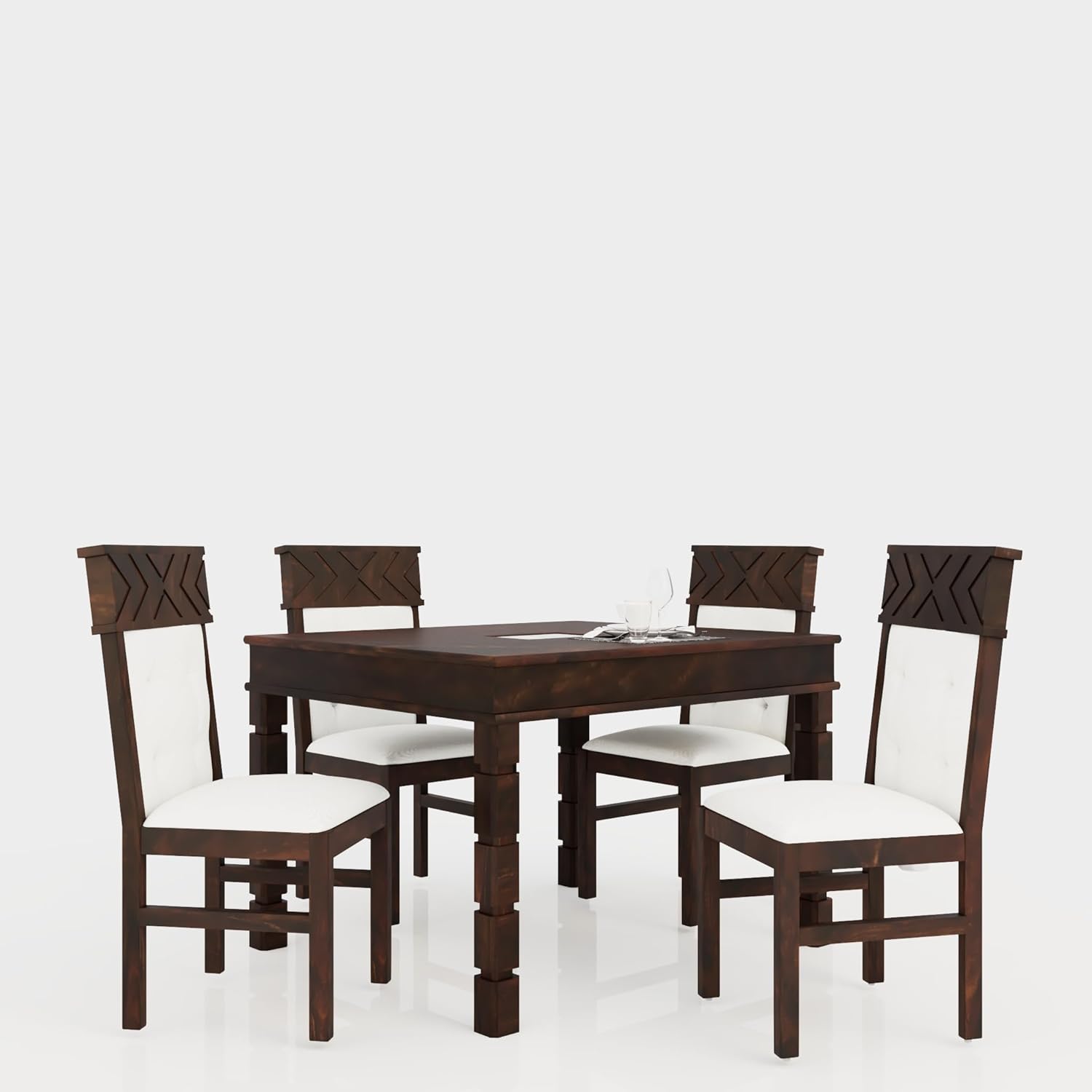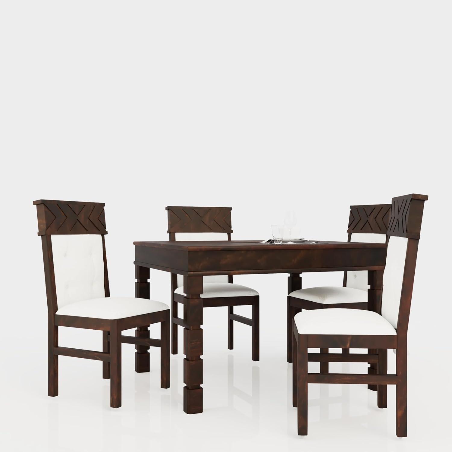 Product Dimensions: Dining Table – 114 cm (45 in) L x 89 cm (35 in) W x 76 cm (30 in) H; Chair – 45 cm (17.5 in) L x 45 cm (17.5 in) W x 97 cm (38 in) H. Designed to seat 4 people comfortably, perfect for family dining and compact spaces.