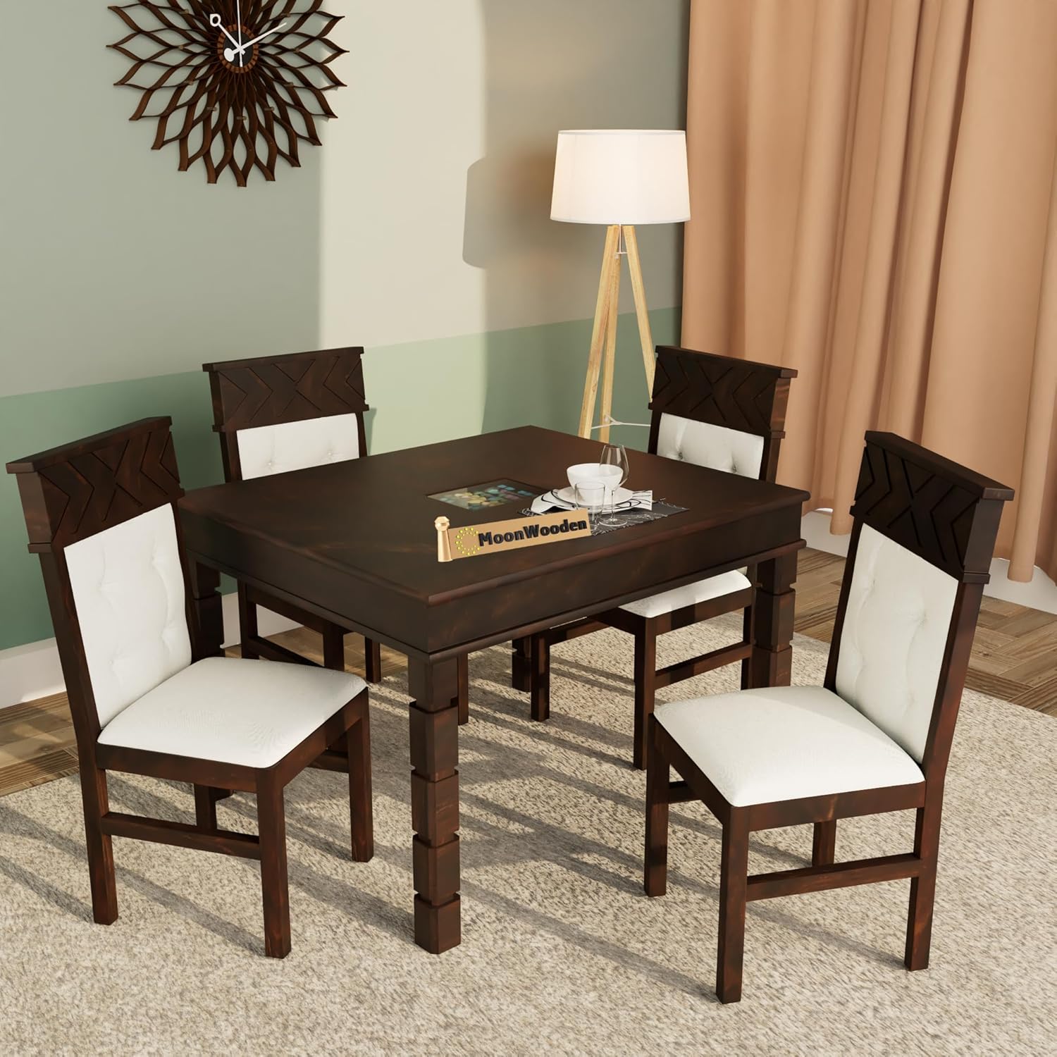 Material: Crafted from solid Sheesham wood with a rich Walnut Finish that beautifully highlights the natural wood grain patterns, adding timeless elegance to your dining area.