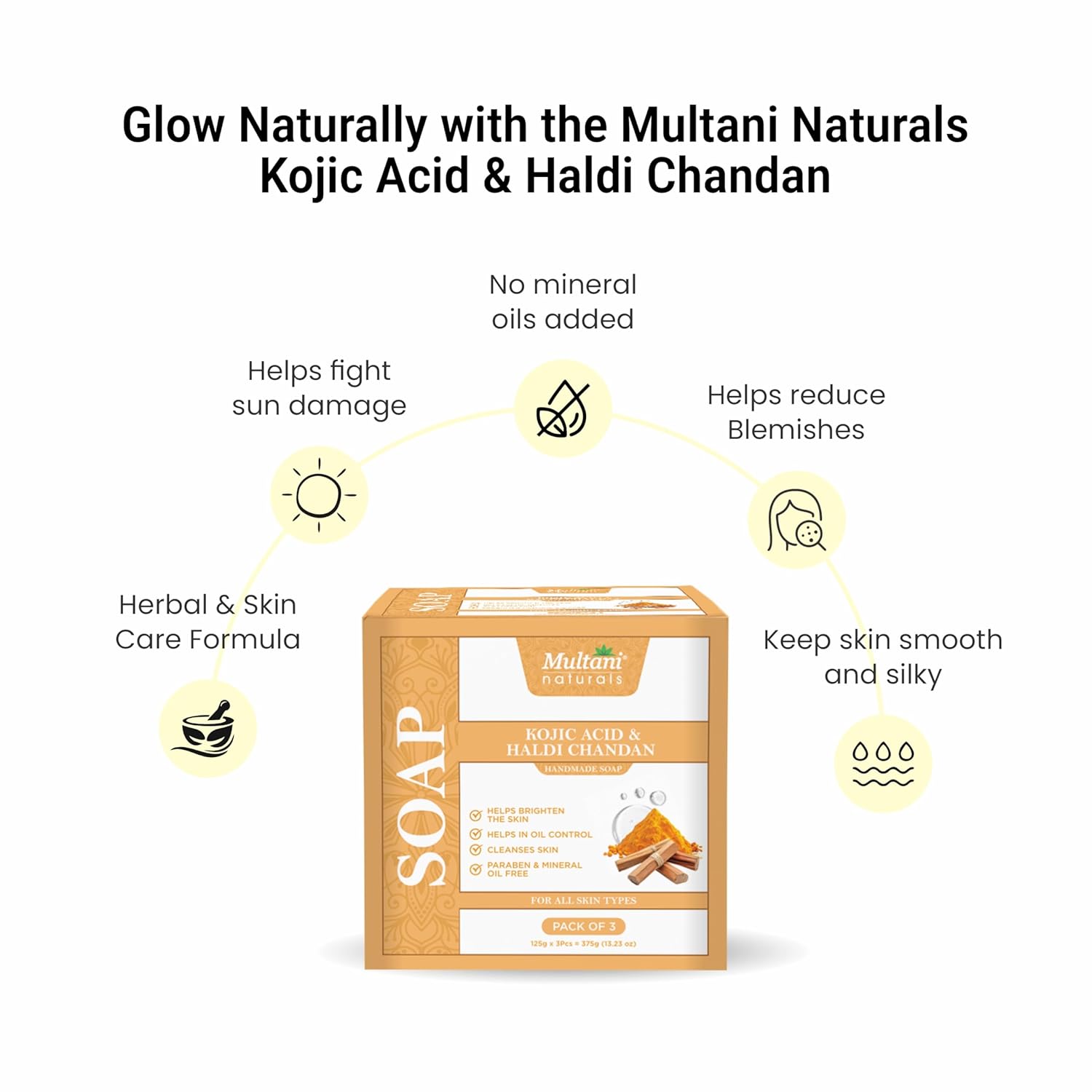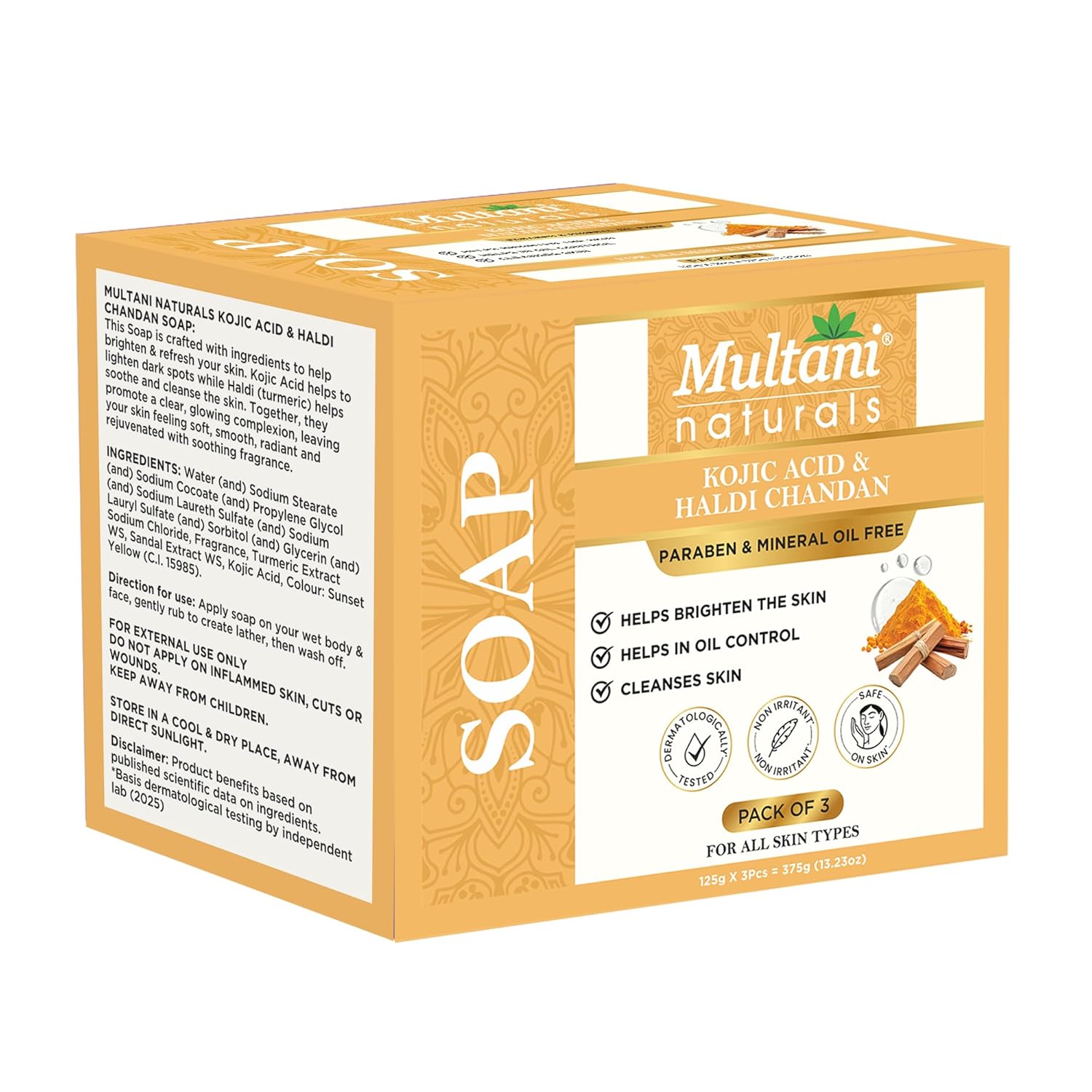 ✅ Dermatologically Tested: Multani Naturals Kojic Acid & Haldi Chandan Soap is dermatologically tested and suitable for all skin types. Its gentle formulation assures help maintain the moisture of skin, making it suitable choice for daily use.