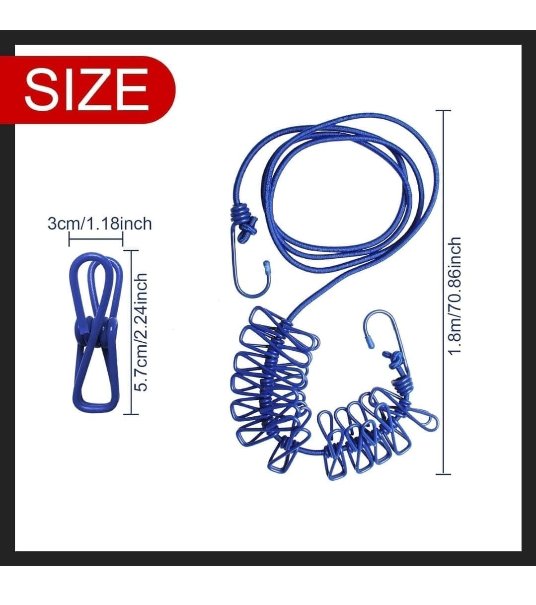 Introducing the Cloth Rope, Cloth Drying Rope with Hooks – a versatile and convenient solution for drying your clothes outdoors. This elastic hanging rope comes with 12 sturdy clips, allowing you to securely hang your garments for efficient air-drying. With its multi-colour design, it adds a touch of vibrancy to your outdoor space. Crafted with durable materials, this rope is built to withstand the elements, ensuring long-lasting use. Whether you’re looking to save energy or simply prefer the fresh scent of line-dried laundry, this cloth drying rope is an excellent choice. Its compact size makes it easy to store when not in use, while its adjustable length (kindly refer to product specifications) accommodates various drying needs. Upgrade your laundry routine with this practical and stylish cloth drying rope.