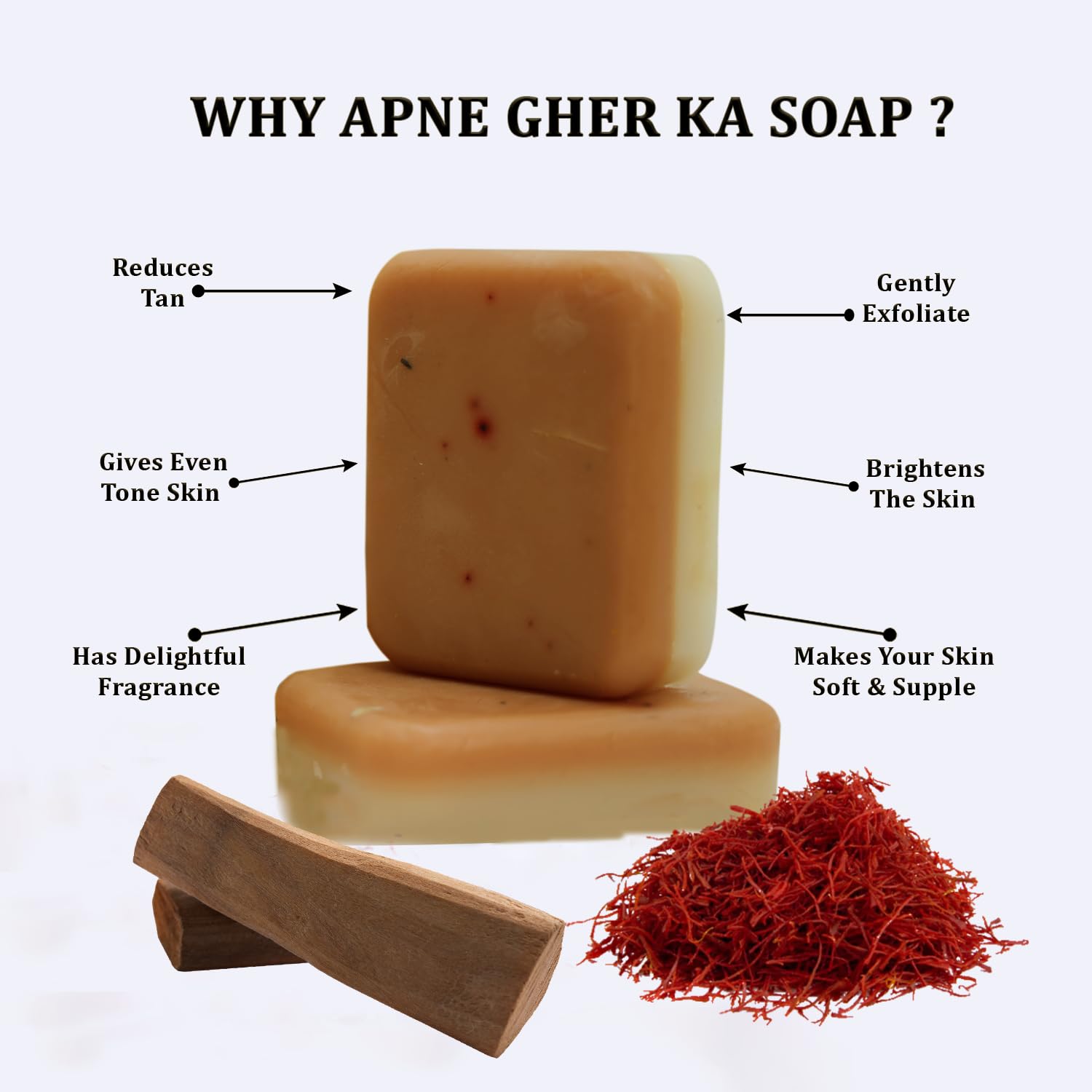 100% Handmade with Love & Care Infused with Pure Sandalwood & Saffron Extracts Paraben-Free, Sulphate-Free & Chemical-Free Suitable for All Skin Types – Men, Women & Teens Mild, Aromatic & Skin-Soothing Ideal for Daily Use on Face & Body Skin Brightening & Tan-Reducing Formula