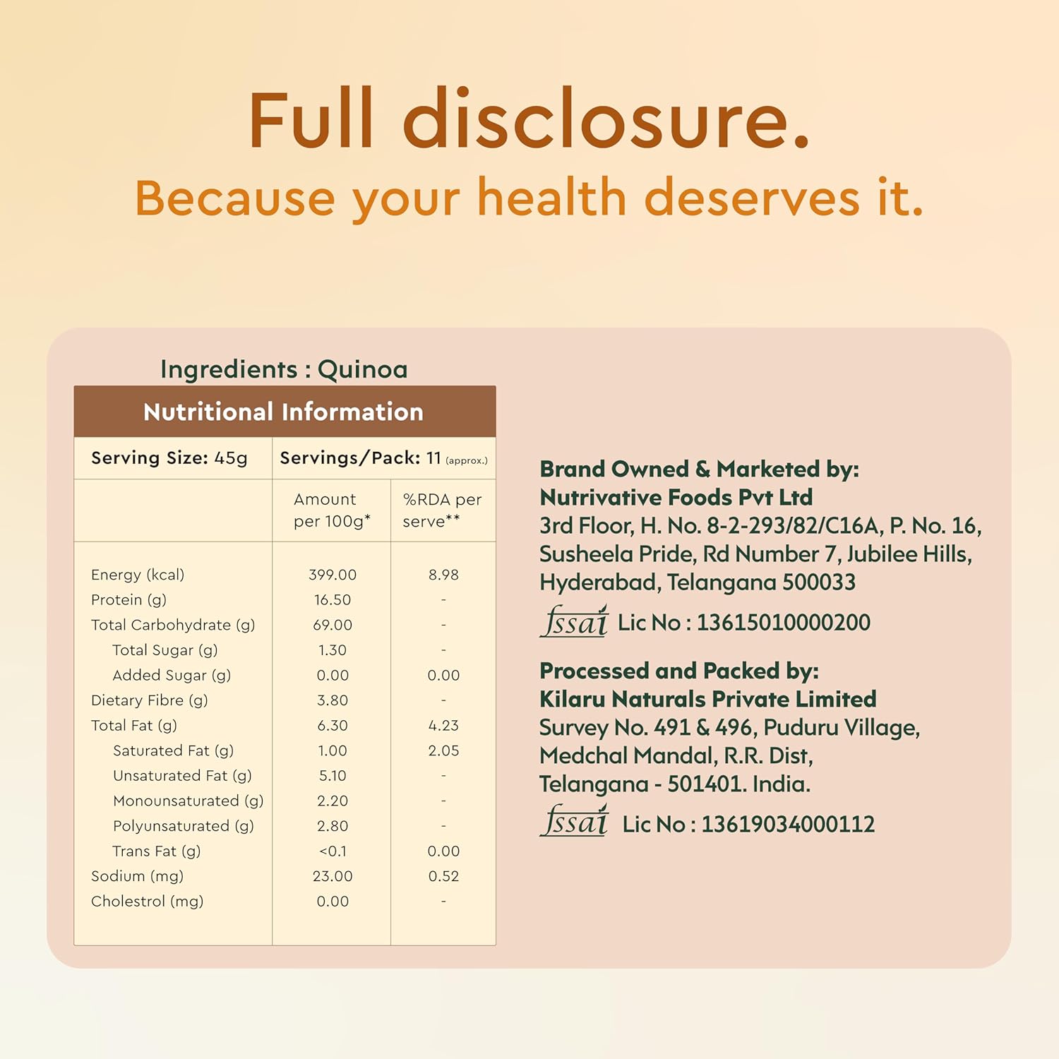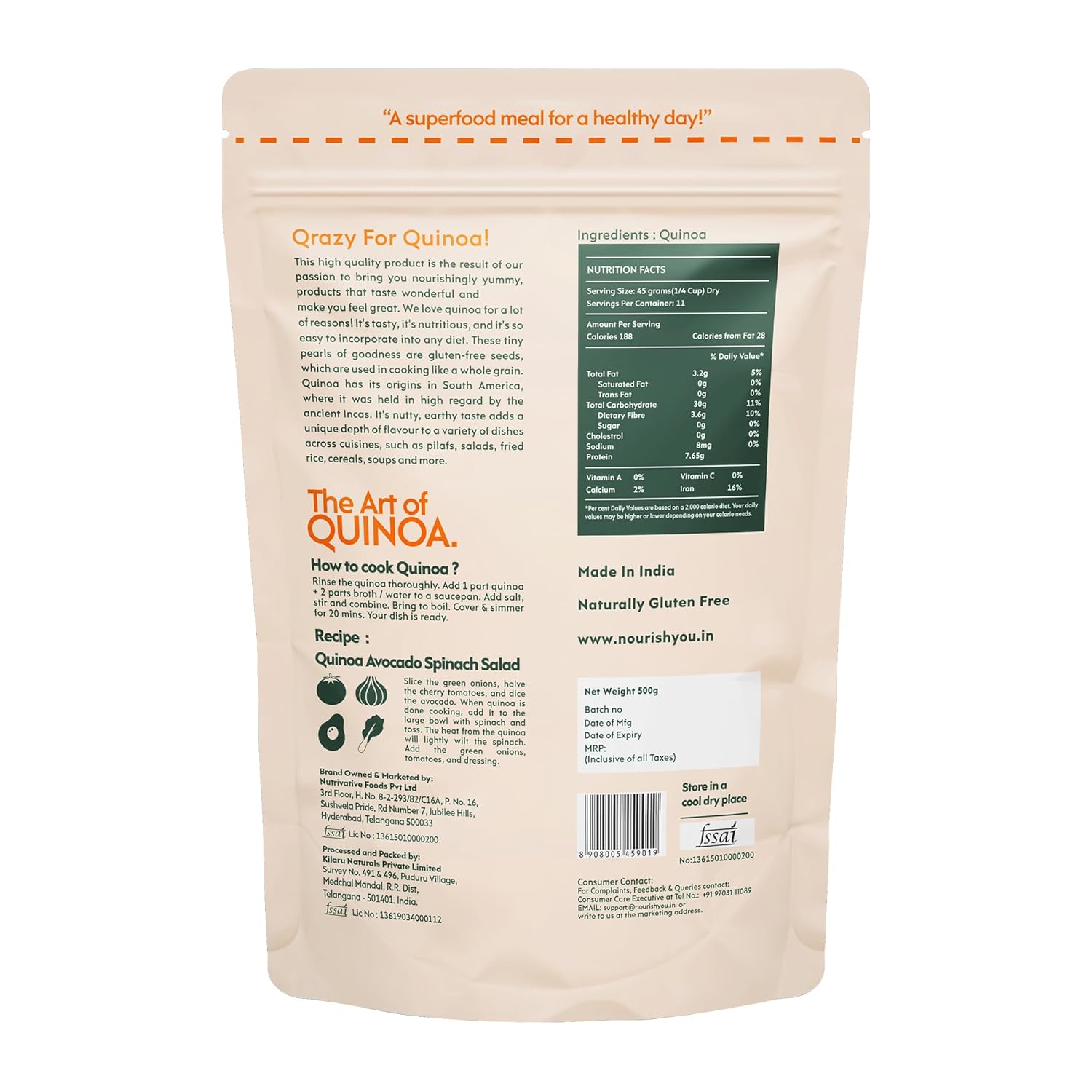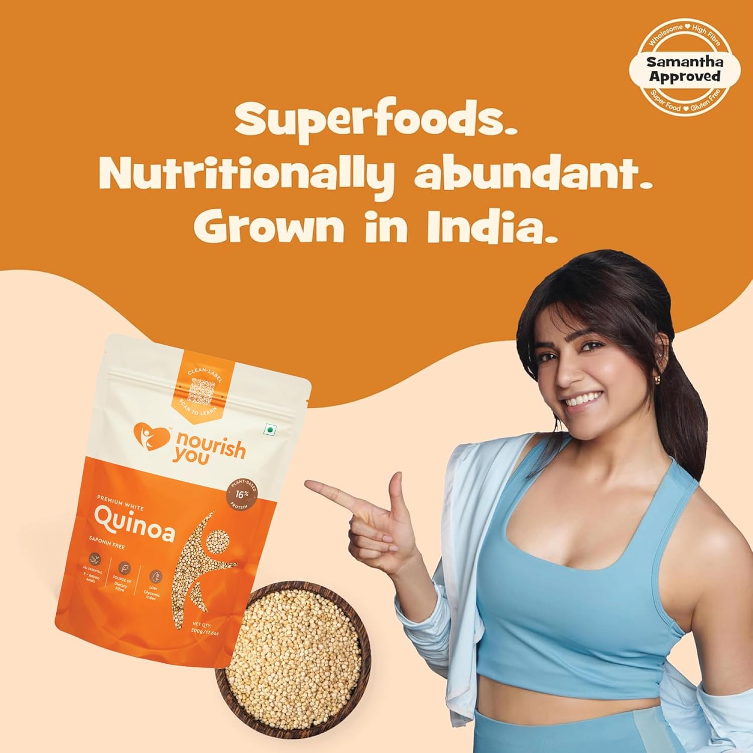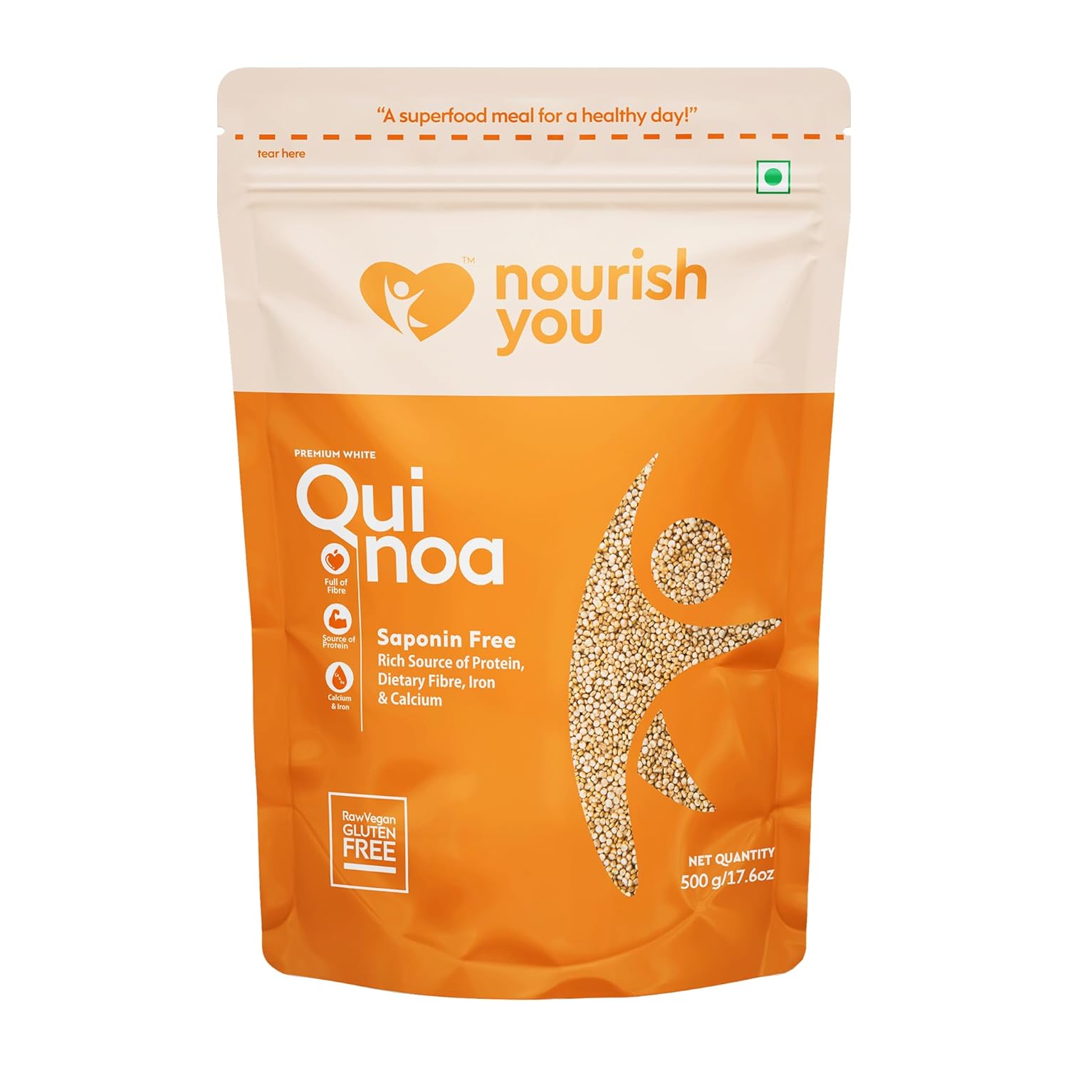 Nourish You Saponin Free White Quinoa is a premium, easy-to-cook superfood rich in protein, dietary fibre, and all 9 essential amino acids. Perfect for healthy meals, weight management, salads, khichdi, pulao, and bowls. Available in 500g, 1kg, 2kg, and quinoa brown rice variants.