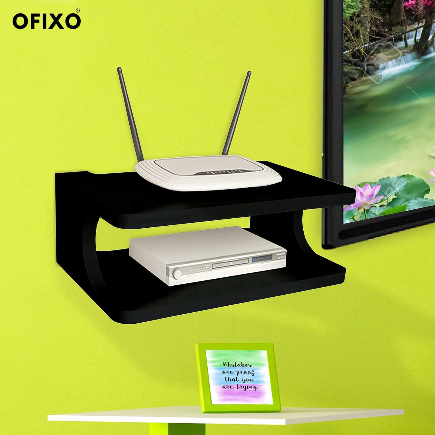 Be the first to review “OFIXO Set top Box Stand WiFi Router Holder Wooden Wall Shelves for Home Wall Mount Stylish TV Cabinet Living Room Furniture (Color-Walnut Brown) (Black)” Cancel reply
