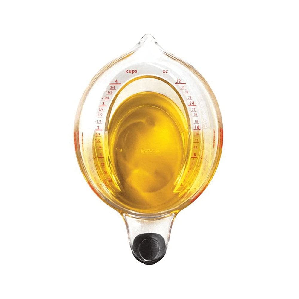 If you find measuring liquids for perfect cuisine preparation a hectic task, think no more! The OXO Good Grips angled measuring cup is a revolutionary measuring cup that provides ultimate solution for liquid measurement with ease. It comes with patented angled surface that allows you to read measurement markings by looking straight down into the cup. As a result, you do not have to fill, check and adjust the amount of liquid you want to measure. This OXO angled measuring cup can ideal used by both professional chefs as well as homemakers.