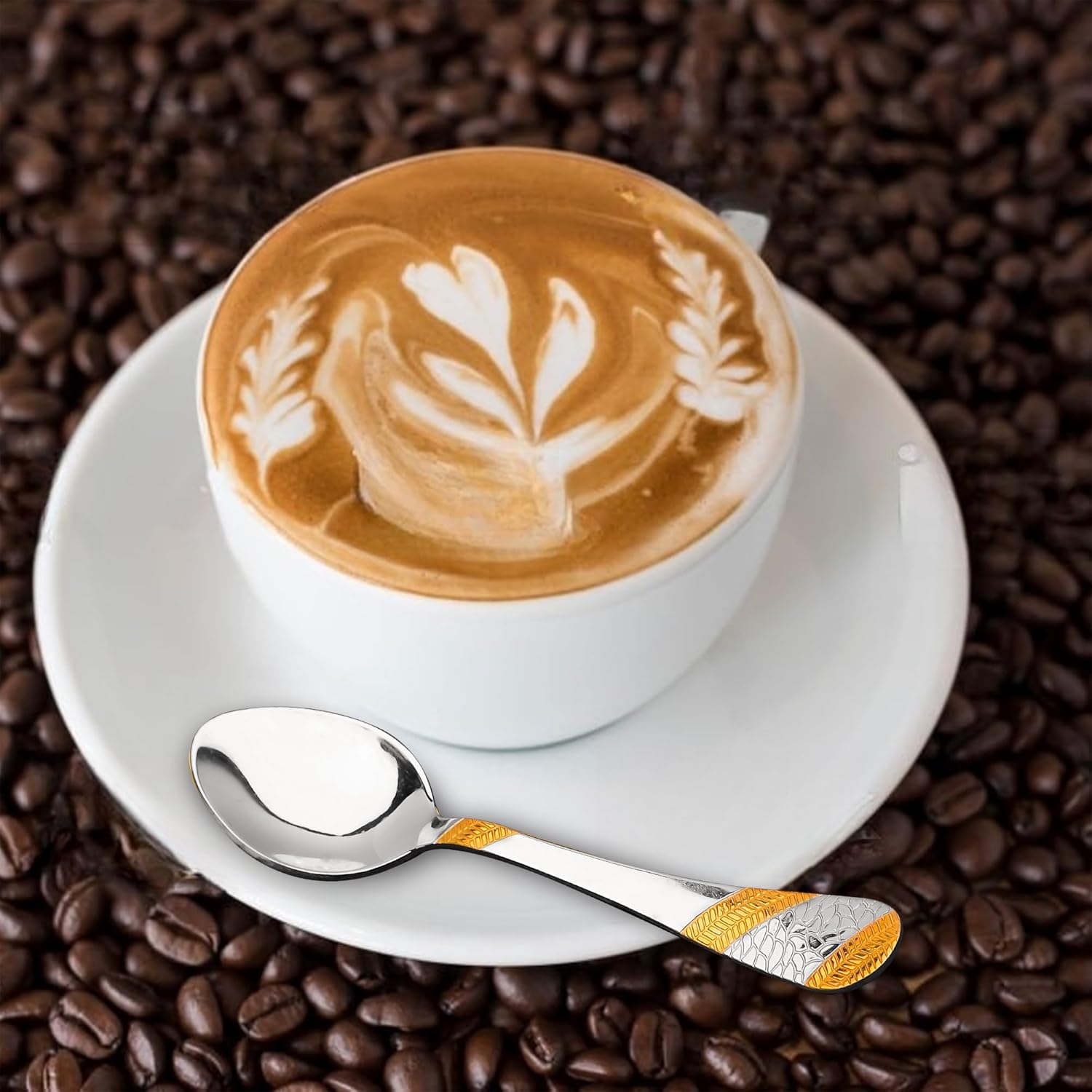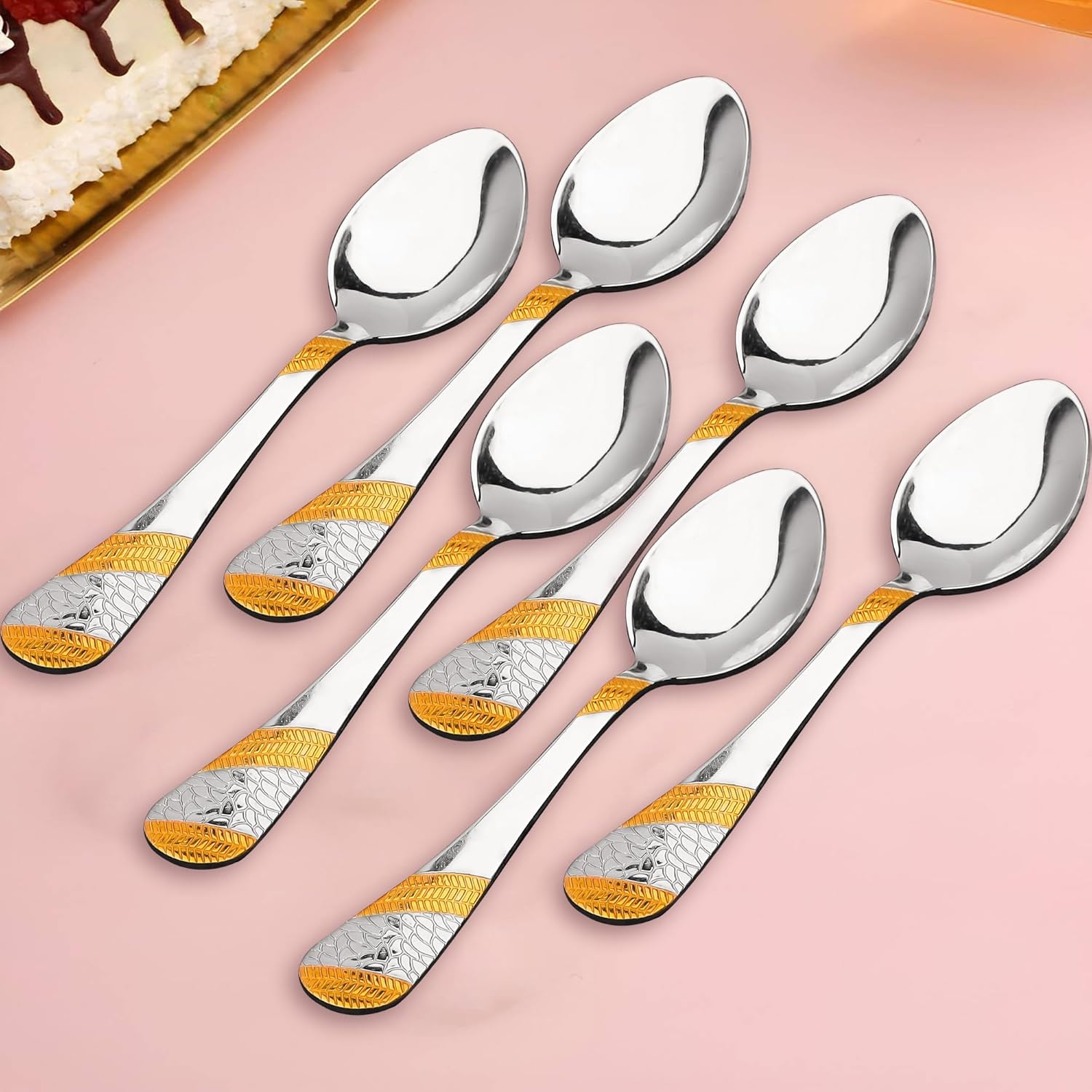 PREMIUM STAINLESS STEEL WITH 24K GOLD FINISH: Crafted from high-quality stainless steel, these tea spoons are plated with genuine 24k gold, ensuring durability, corrosion resistance, and a stunning golden finish. It gives dual tone feel because of the combination of 24k carat gold and matt finish used on the cutlery handle.
