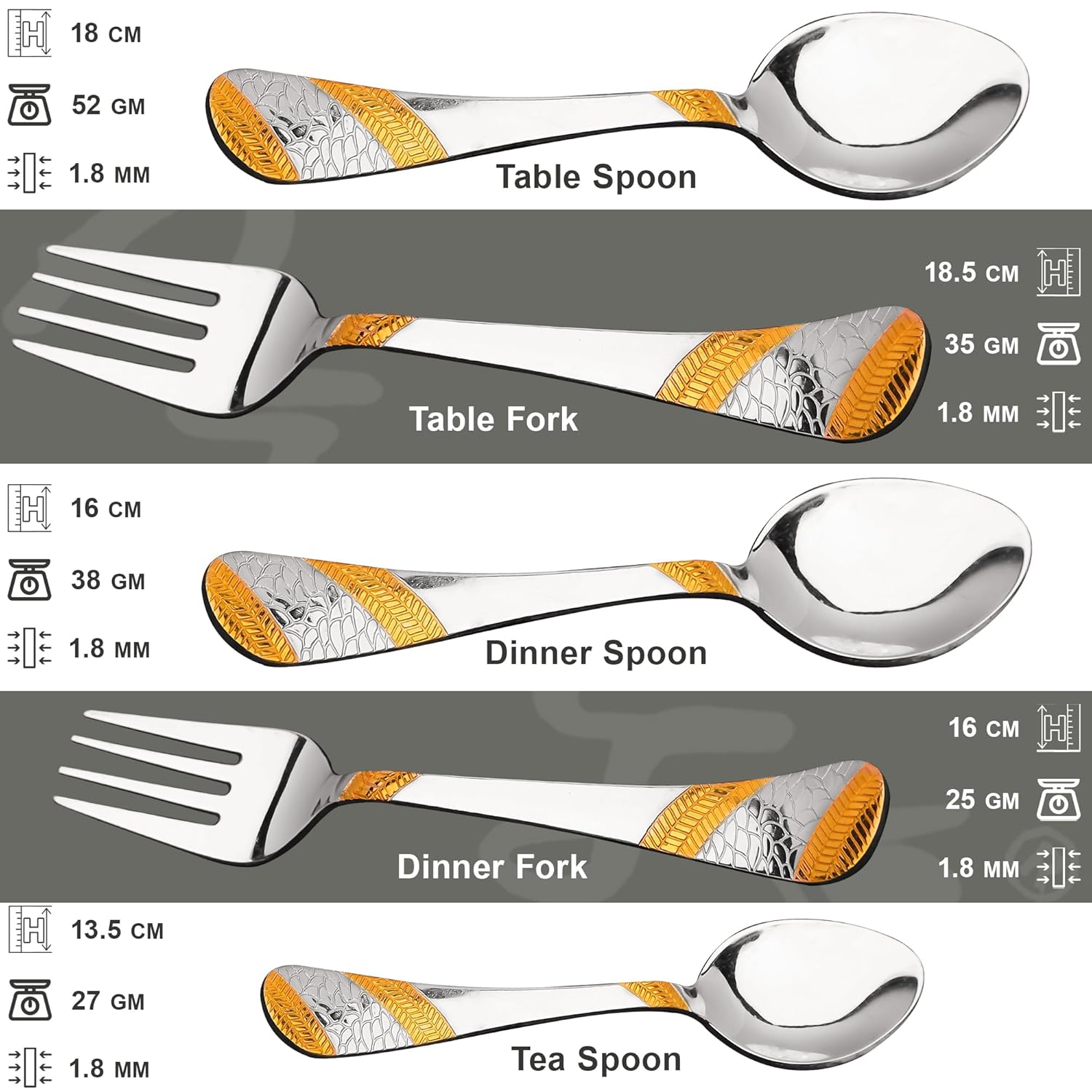 THE PROPER SIZE: The regular 13.5 cm silver tea spoon size is the most common style in the family. This cutlery set for dining table is the great size for daily use. They work well for stirring things like coffee, tea, smoothie and chocolate milk. The premium materials and craftsmanship make them suitable for both casual family meals and special occasions.