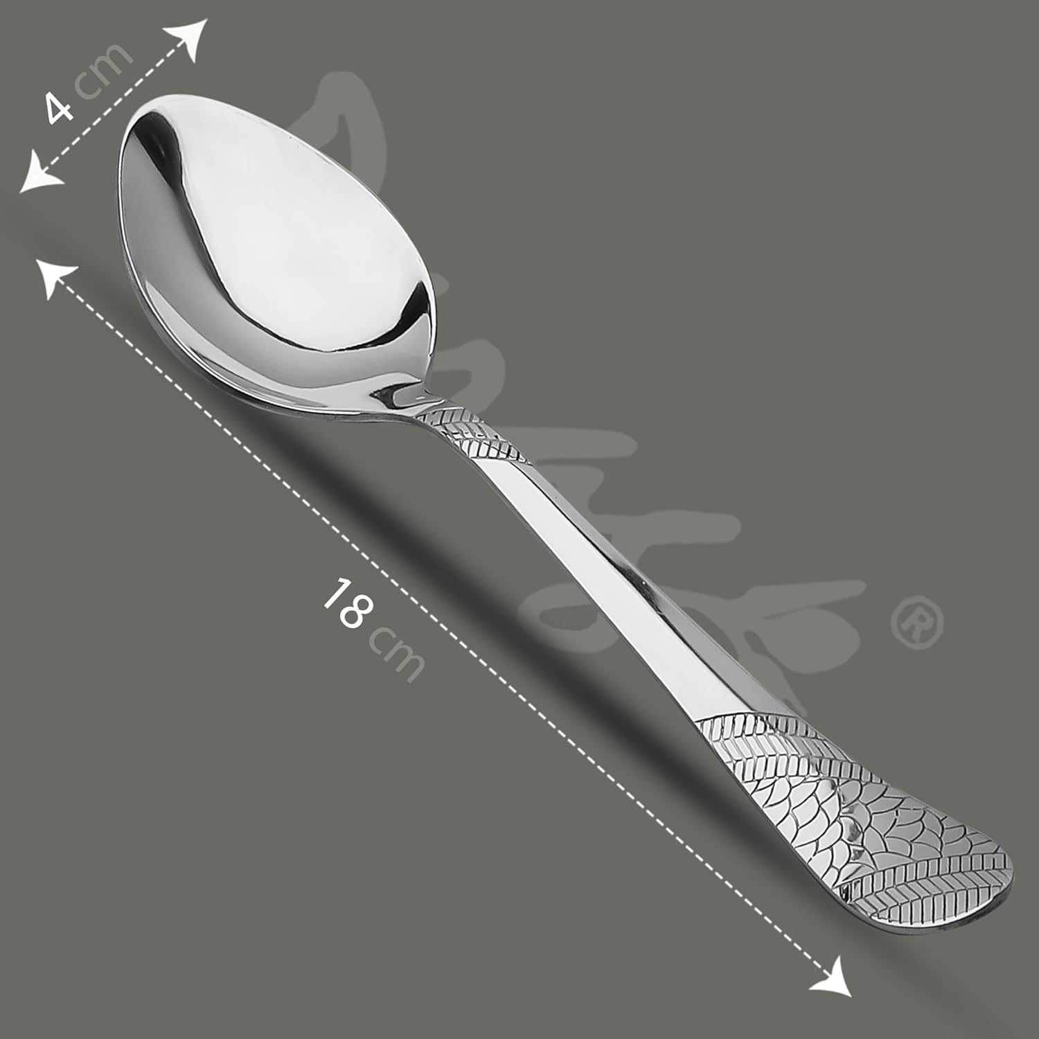 THE PROPER SIZE: The regular 18 cm silver table spoon size is the most common style in the family. This cutlery set for dining table is the great size for daily use. They work well for stirring things like coffee, tea, smoothie and chocolate milk.