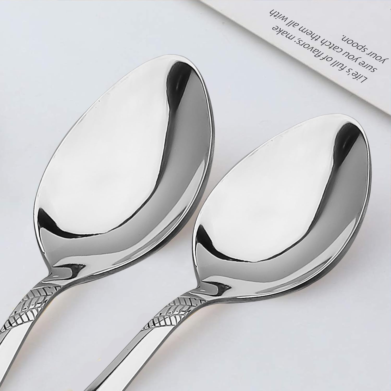 EXQUISITE GLOSSY MIRROR FINISH: This is high quality table spoons which comes with a longer life, The material of this table spoons set of 6 stainless steel stands out for their durability and non-corrosion resistance, sturdy and not easily bent. Most importantly, it’s dishwasher-safe.