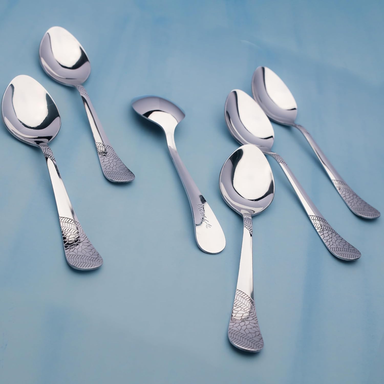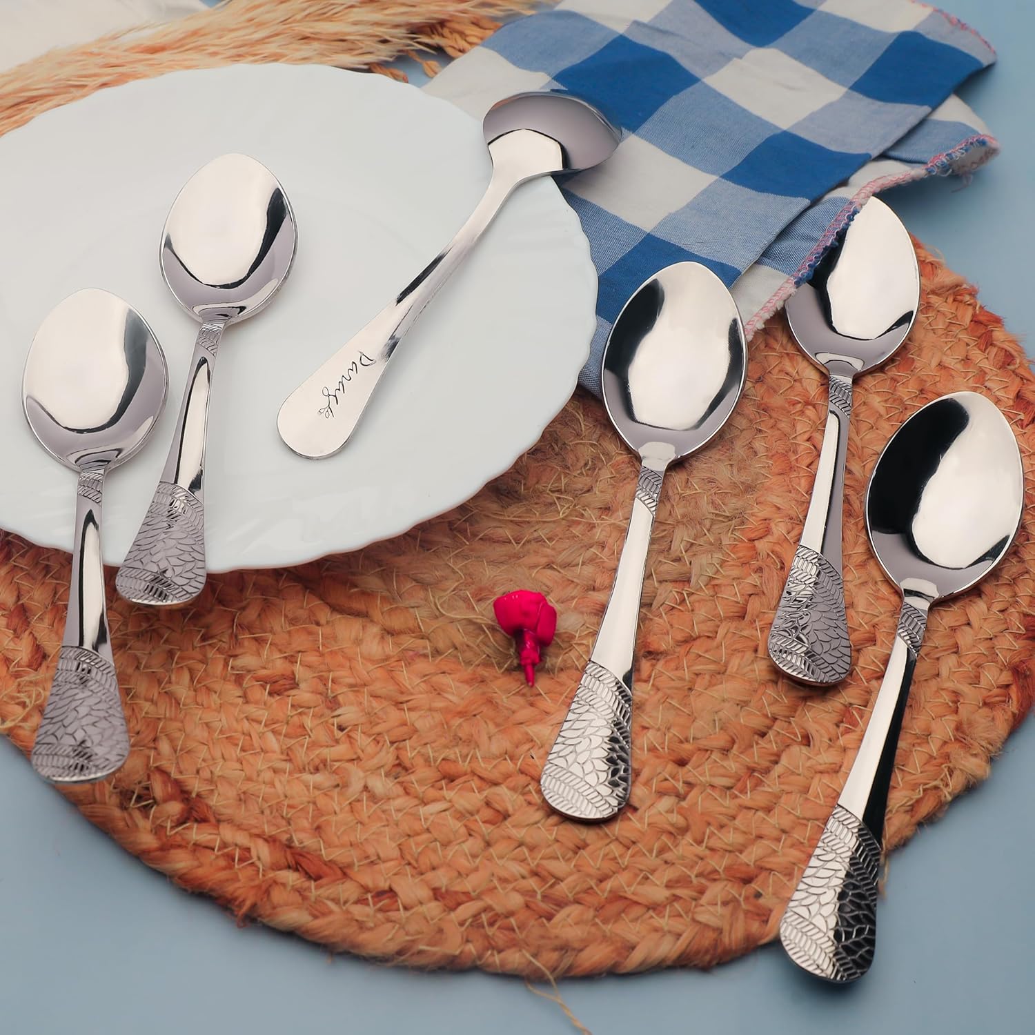 Customers find the spoon set to be of good quality and economical. They appreciate its appearance, with one customer noting its beautiful pattern with rounded edges. The size receives positive feedback, with customers describing it as perfect and heavy.