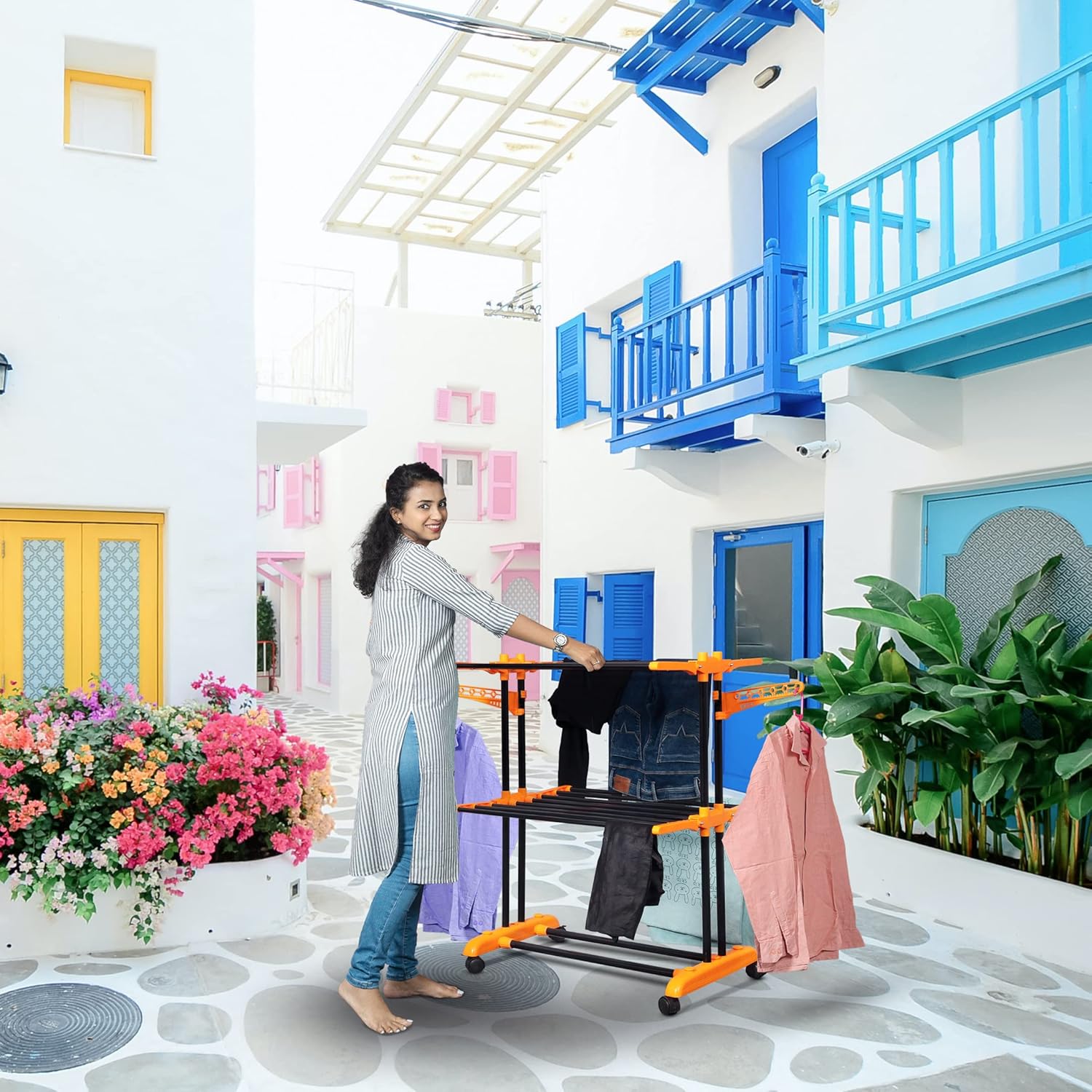 This is a high-quality clothes rack for hanging wet clothes. Wet clothes tend to get heavy when they have soaked up a lot of water. This rack is sturdy and is made from durable steel and can take the weight of heavy wet clothes. Keep it in your balcony for drying your laundry. And if you do not have a space like a balcony for drying clothes, you can use this rack in your rooms.