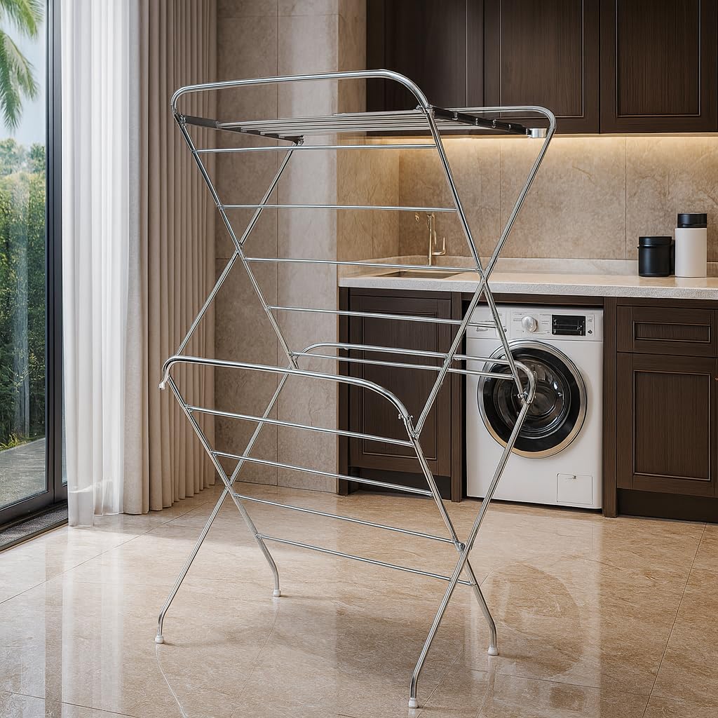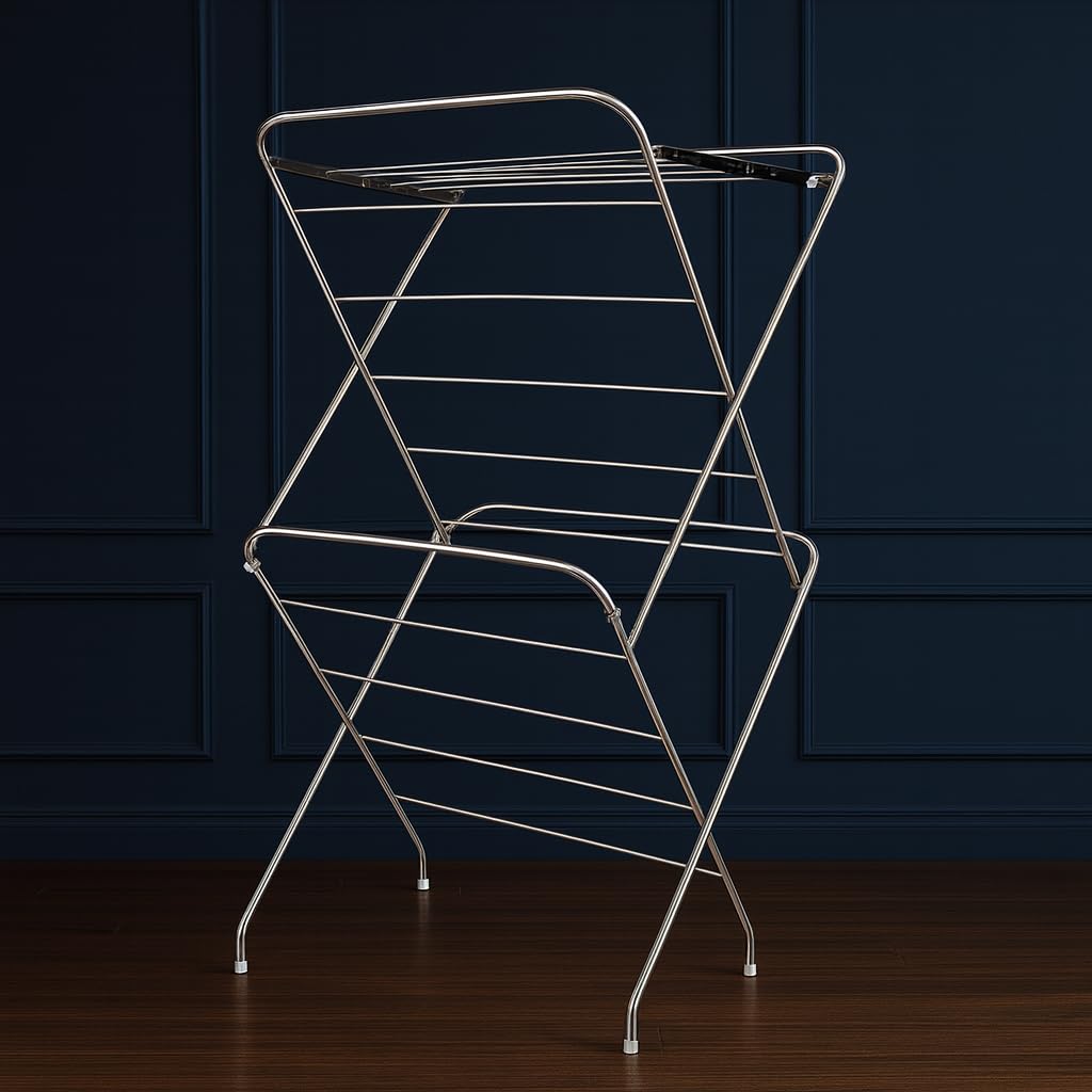 Parasnath 12 Road Stainless Steel Heavy Duty Cloth Drying Stand – Air Drying Clothes Made Easy! From delicate hand-washables to everyday loads of laundry, this Parasnath cloth drying stand offers a simple solution for conveniently air-drying clothes. The drying stand keeps your clothes hanging neatly together and can be placed indoors and outdoors.