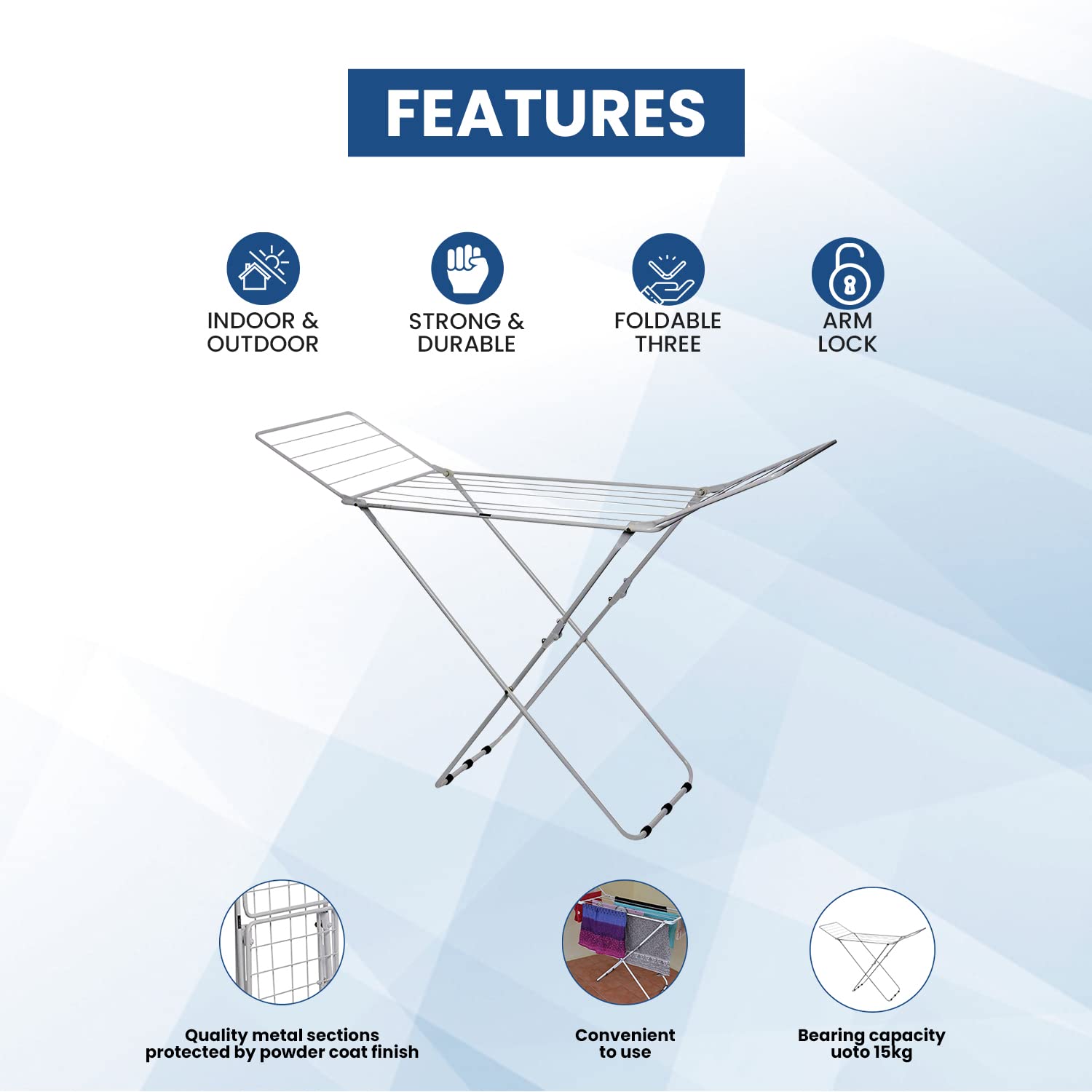 Drying Space & Capacity: With a 11-meter drying space and a 25 kg capacity, the Cloth Drying Stand offers ample room for drying a variety of garments while ensuring reliable support