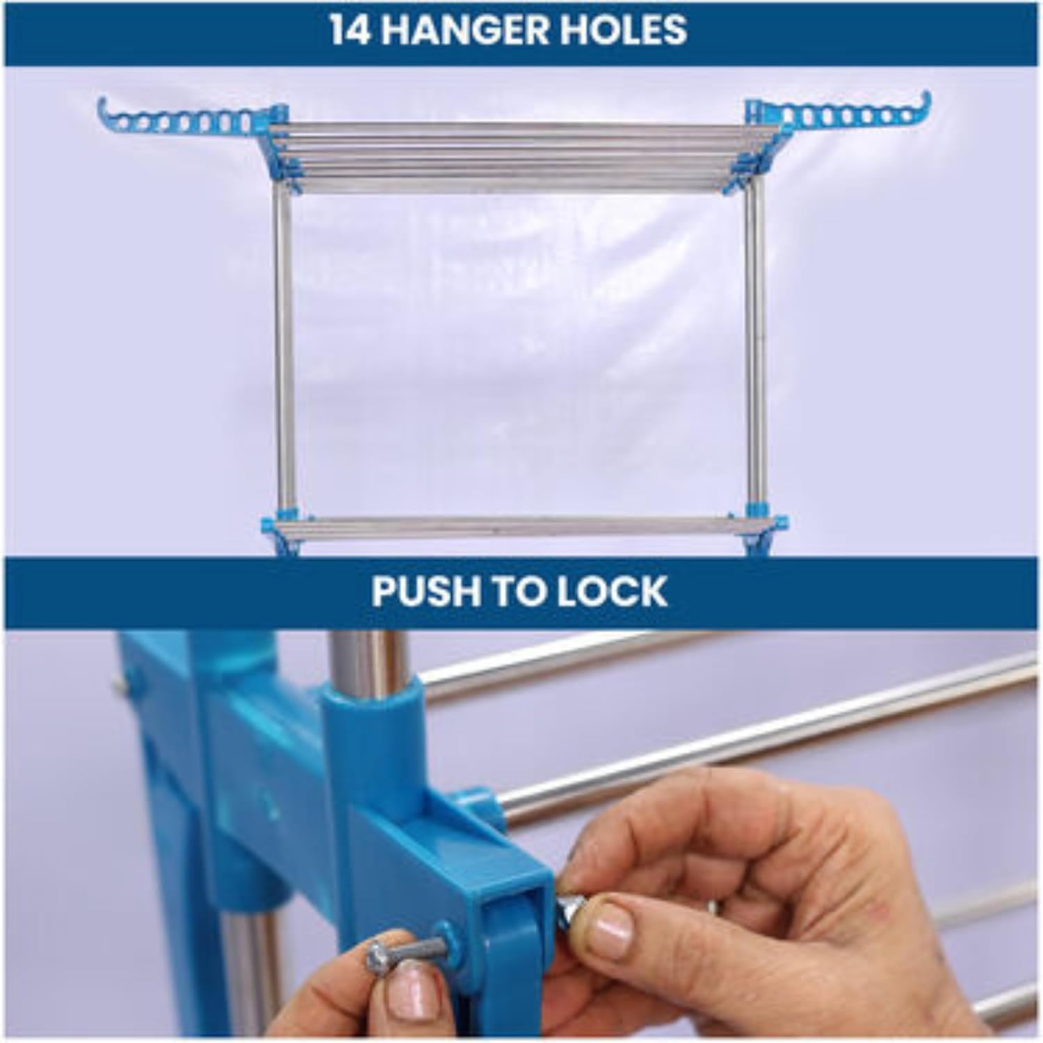 EXTRA SPACIOUS & LONG-LASTING: This stainless steel clothes drying stand is crafted with strong, germ-resistant rods and tough ABS plastic, making it ideal for homes with kids and pets. The spacious design is perfect for drying shirts, towels, bedsheets, mats, and more. Use it as a kapde sukhane ka stand, clothing stand, dress drying stand, or steel clothes stand for drying—all in one.