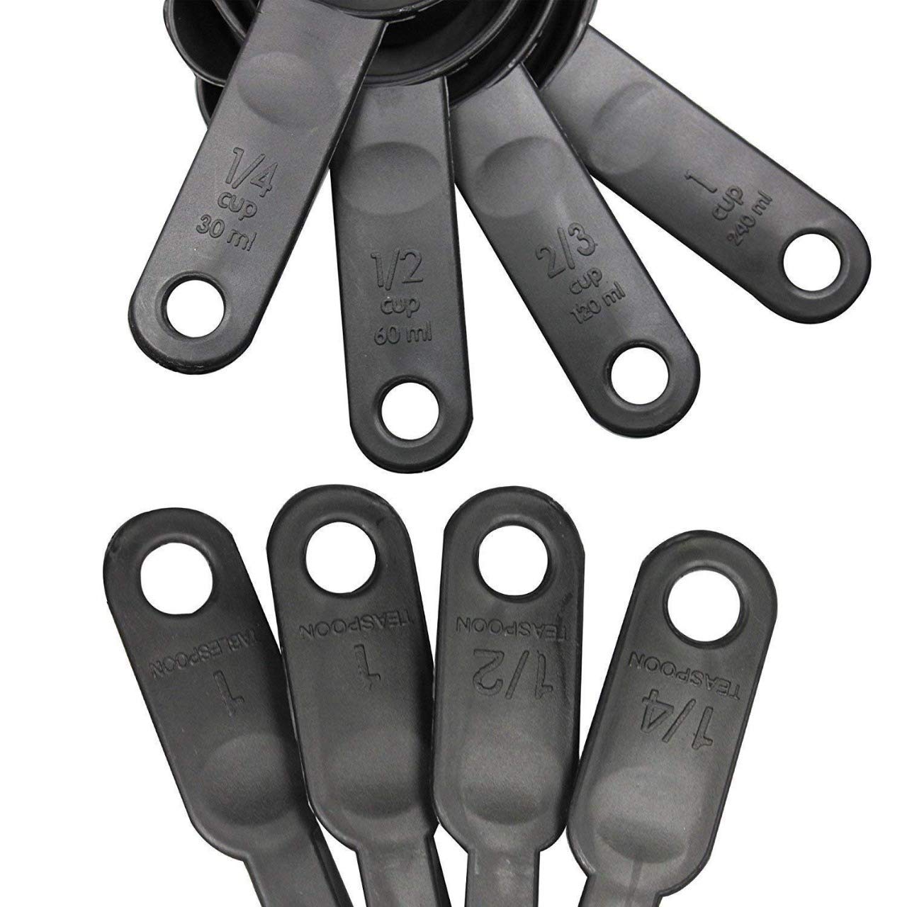 Set of 4 measuring cups and 4 spoons, Colour : Black, Material: Plastic