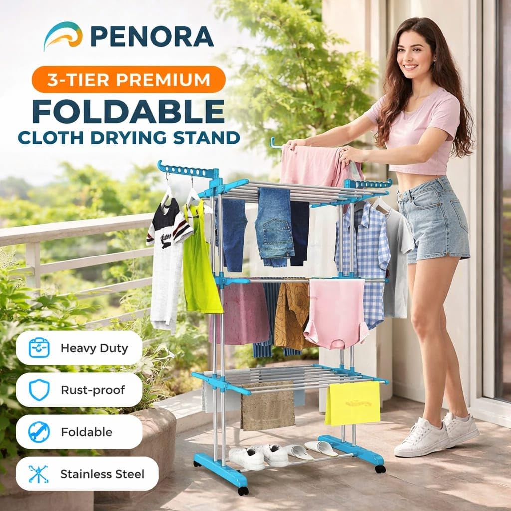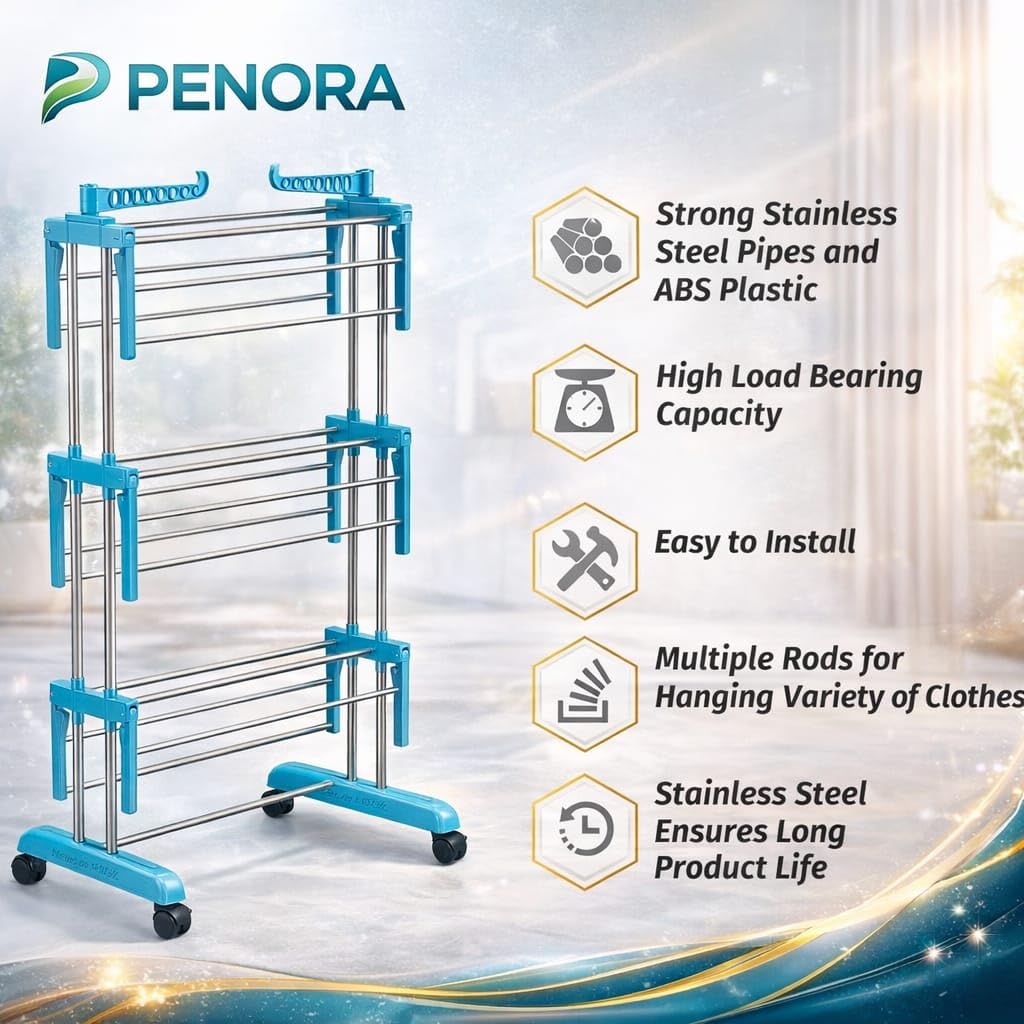 PROUDLY MADE IN INDIA: Penora brings you a premium-quality clothes drying stand, proudly manufactured in India using high-grade stainless steel and durable plastic. This cloth drying stand is built to last, giving you long-term value and strength for daily laundry use.
